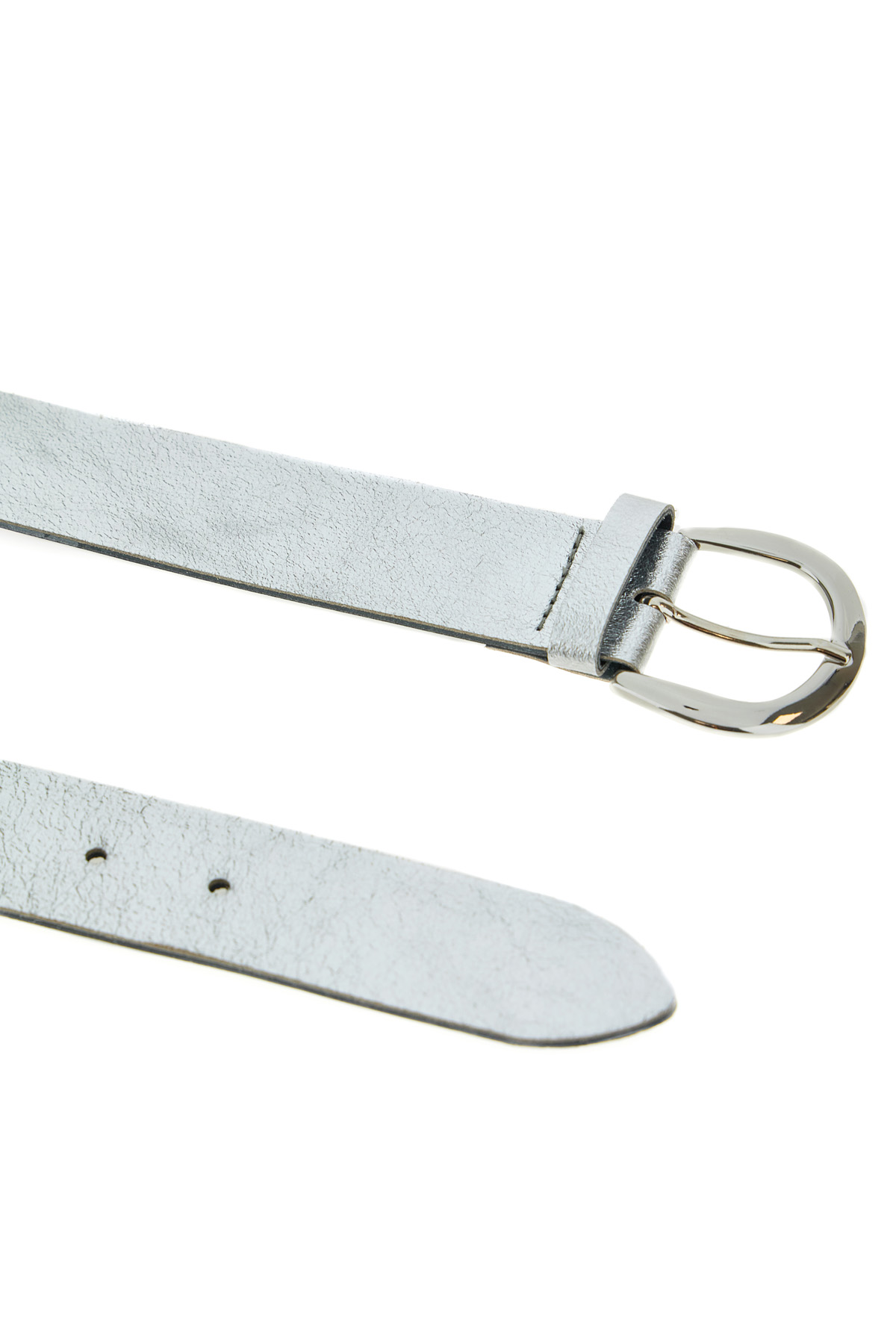Cintura realizzata in vera pelle martellata dal finish laminato con fibbia arrotondata in metallo.