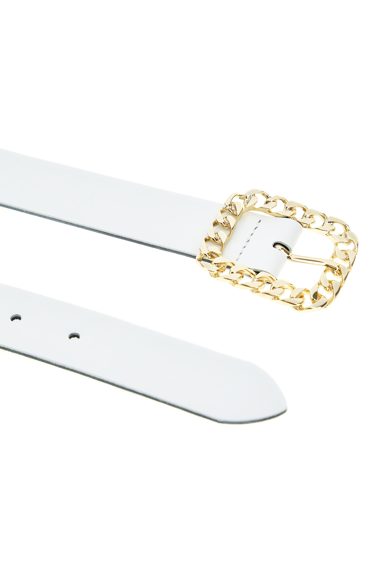 Cintura realizzata in vera pelle con chiusura tramite fibbia effetto catena.