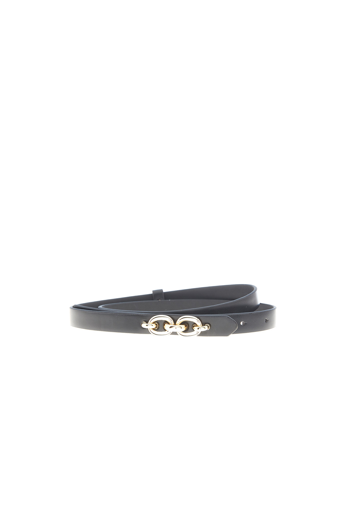 Cintura realizzata in similpelle, con chiusura tramite applicazione metallica con gancio a incastro.