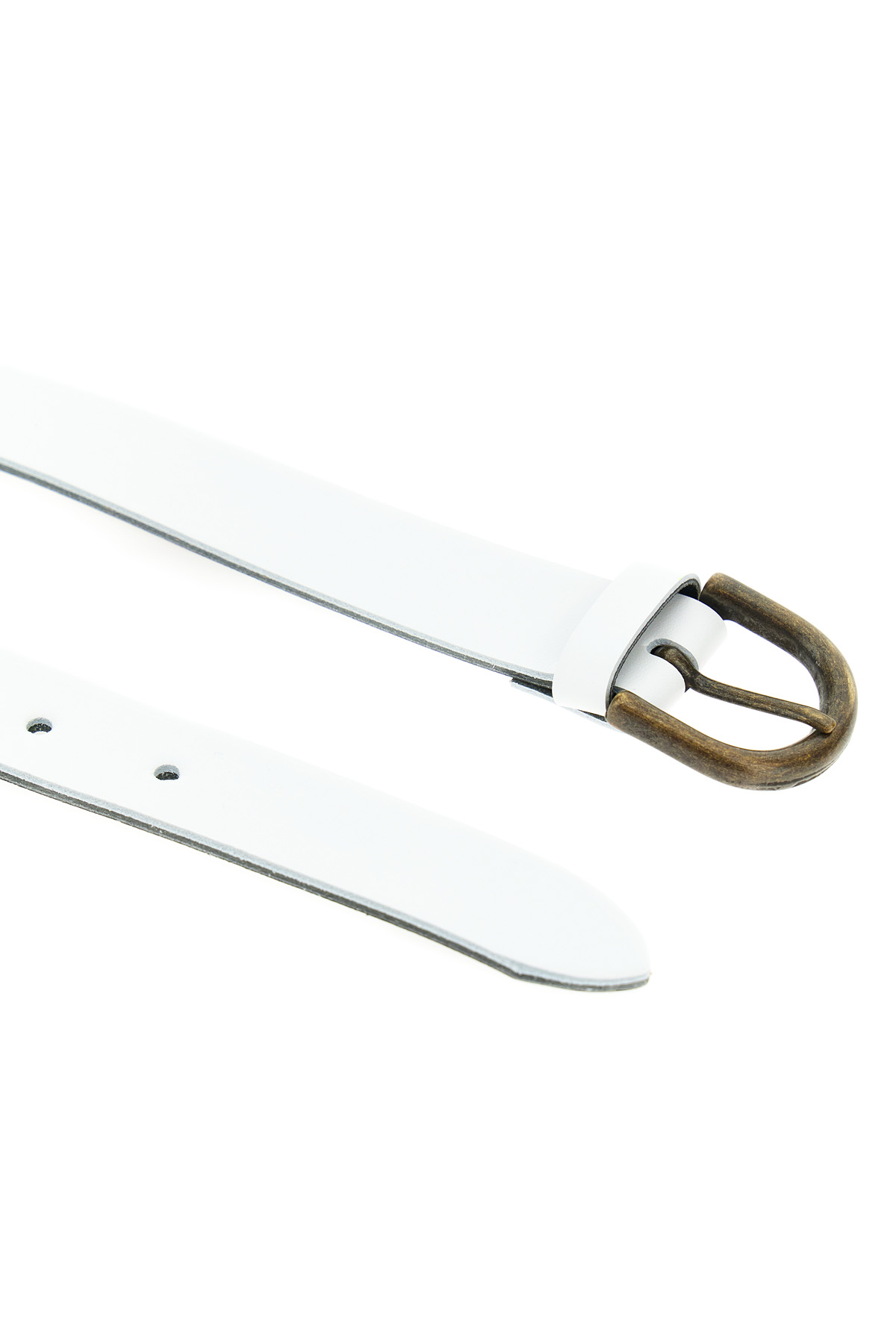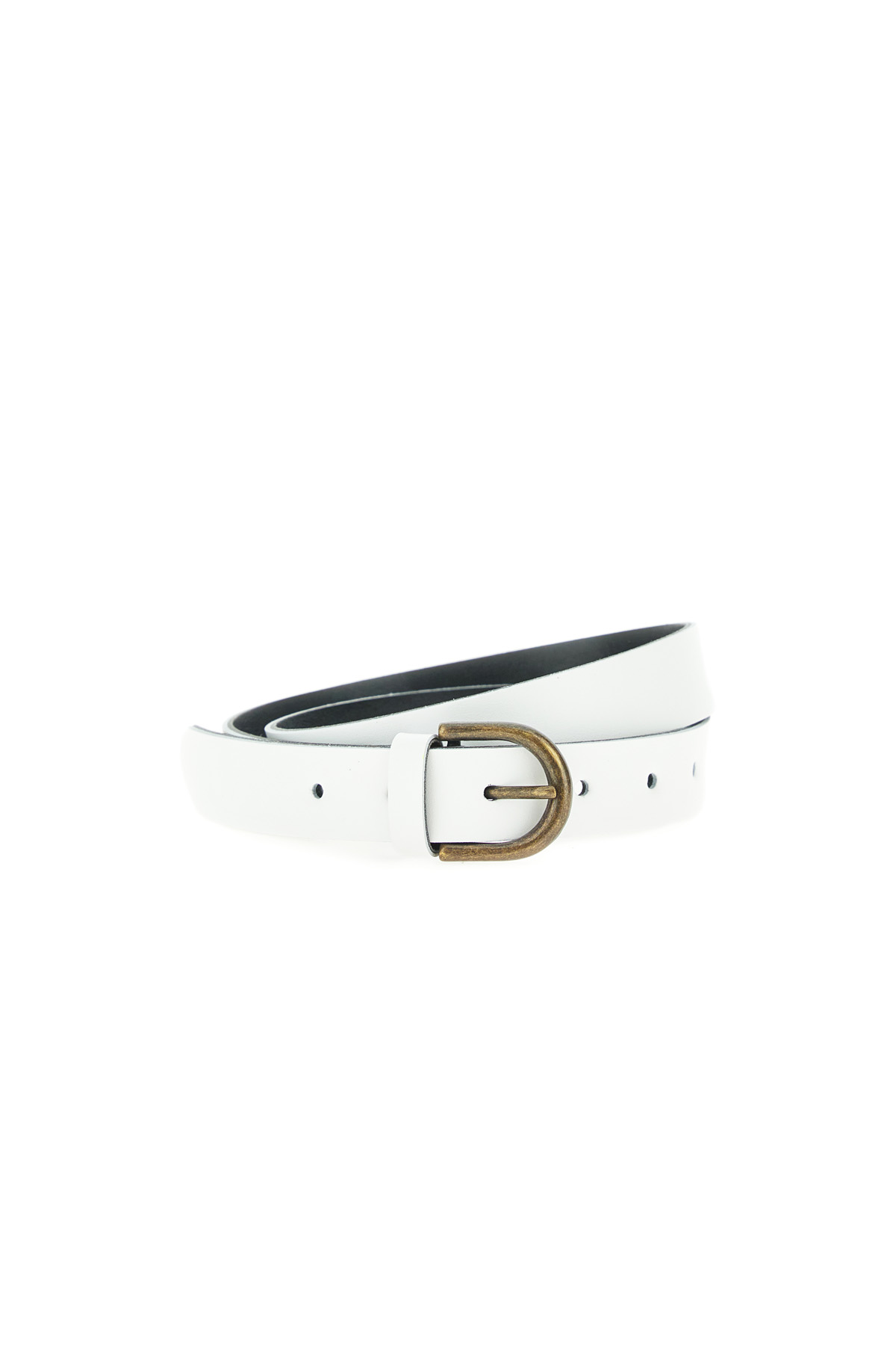 Cintura realizzata in vera pelle, con fibbia in metallo effetto invecchiato.