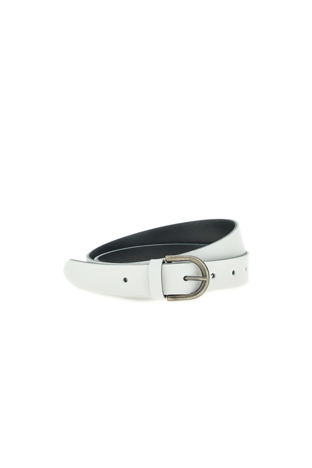 Cintura realizzata in vera pelle, con fibbia in metallo effetto invecchiato.