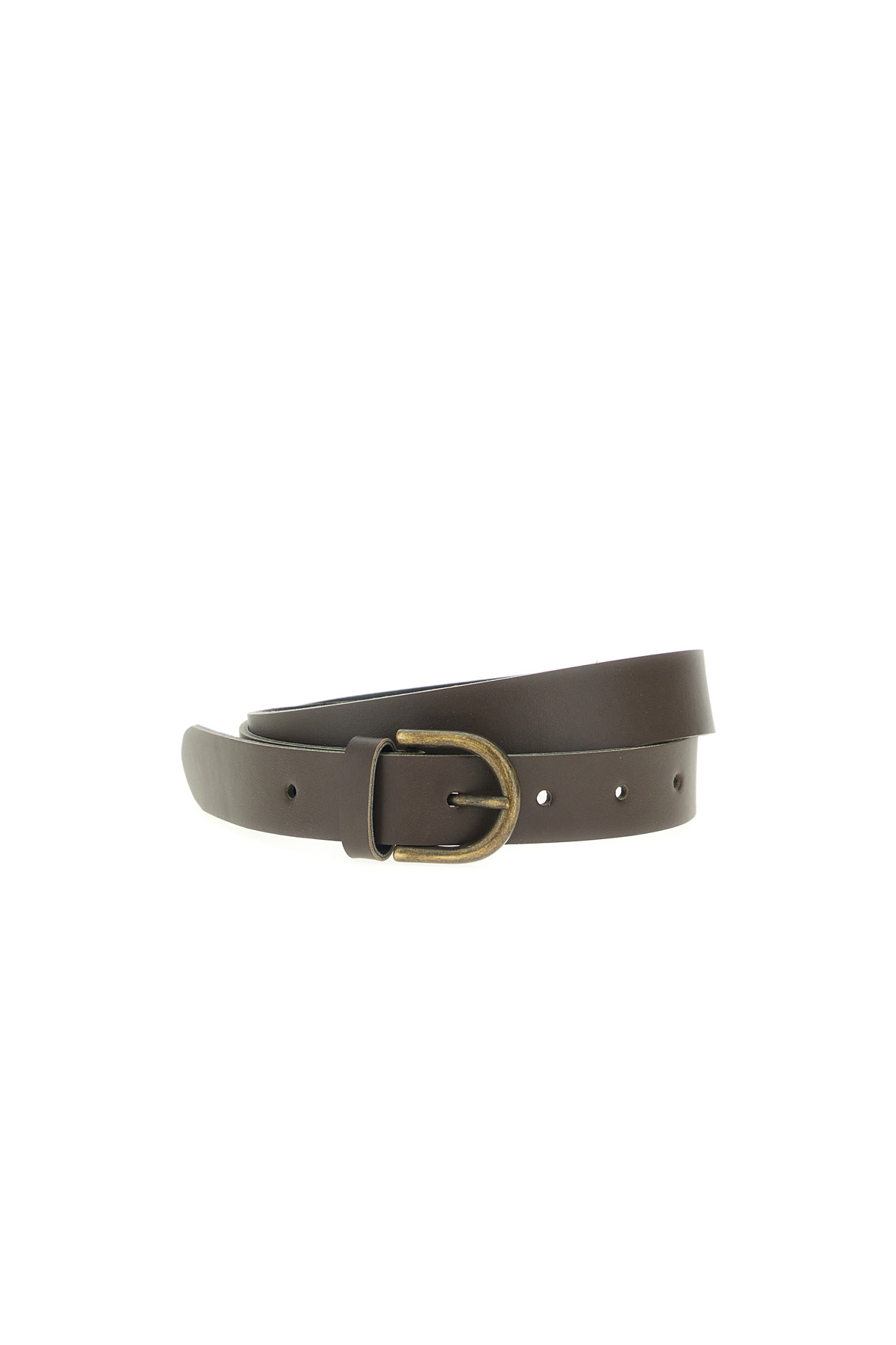 Cintura realizzata in vera pelle, con fibbia in metallo effetto invecchiato.