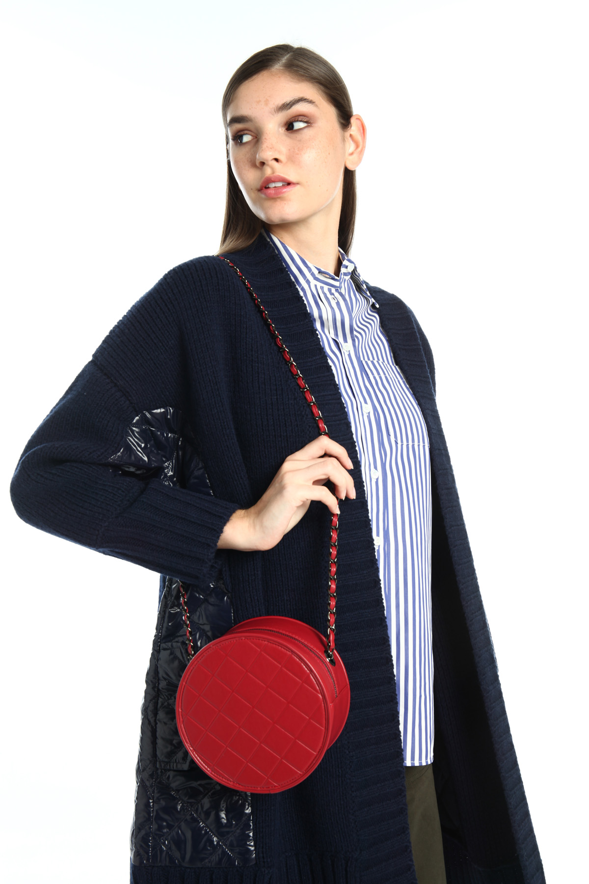 Borsa a tracolla realizzata in similpelle con lavorazione effetto trapuntato, interno foderato con taschini e chiusura con zip.