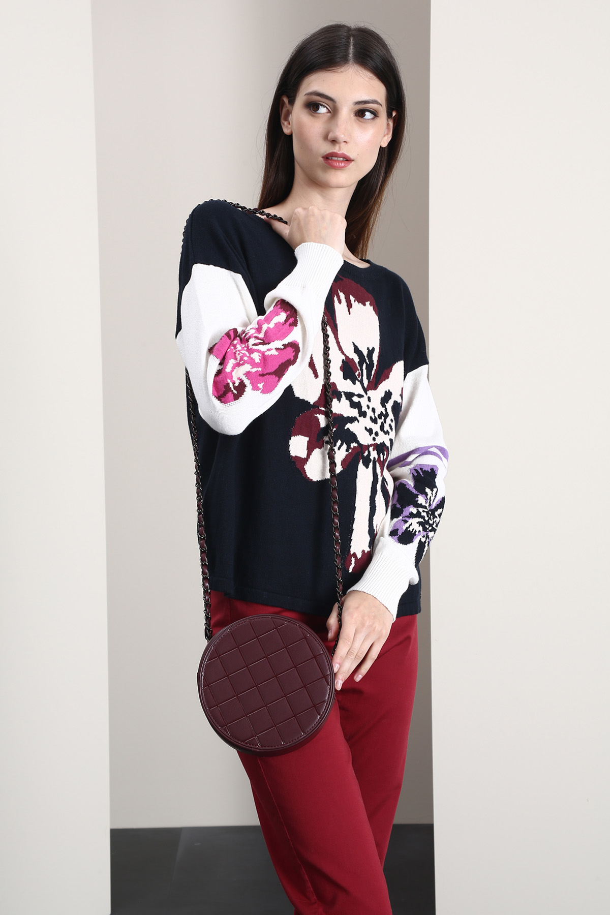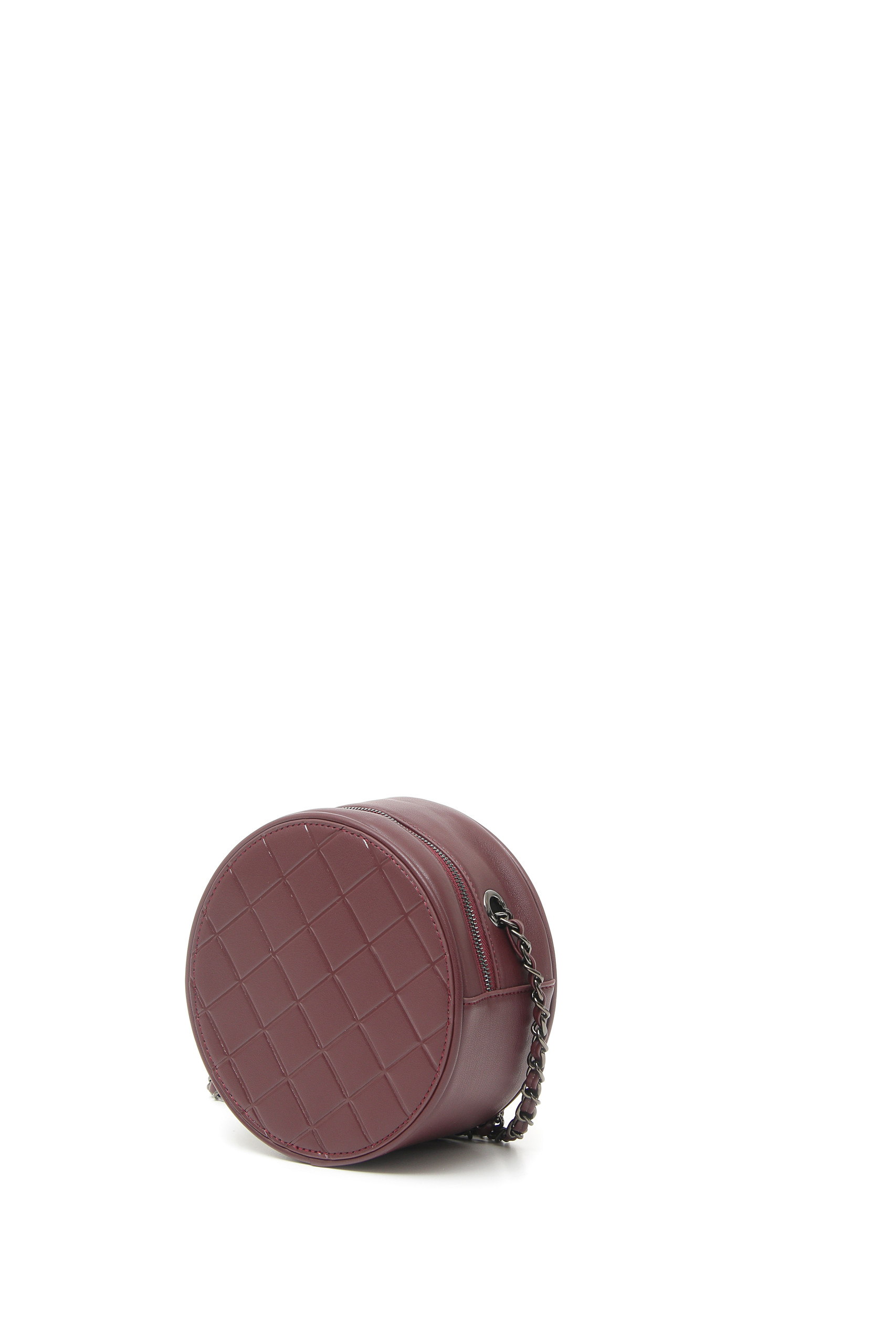 Borsa a tracolla realizzata in similpelle con lavorazione effetto trapuntato, interno foderato con taschini e chiusura con zip.