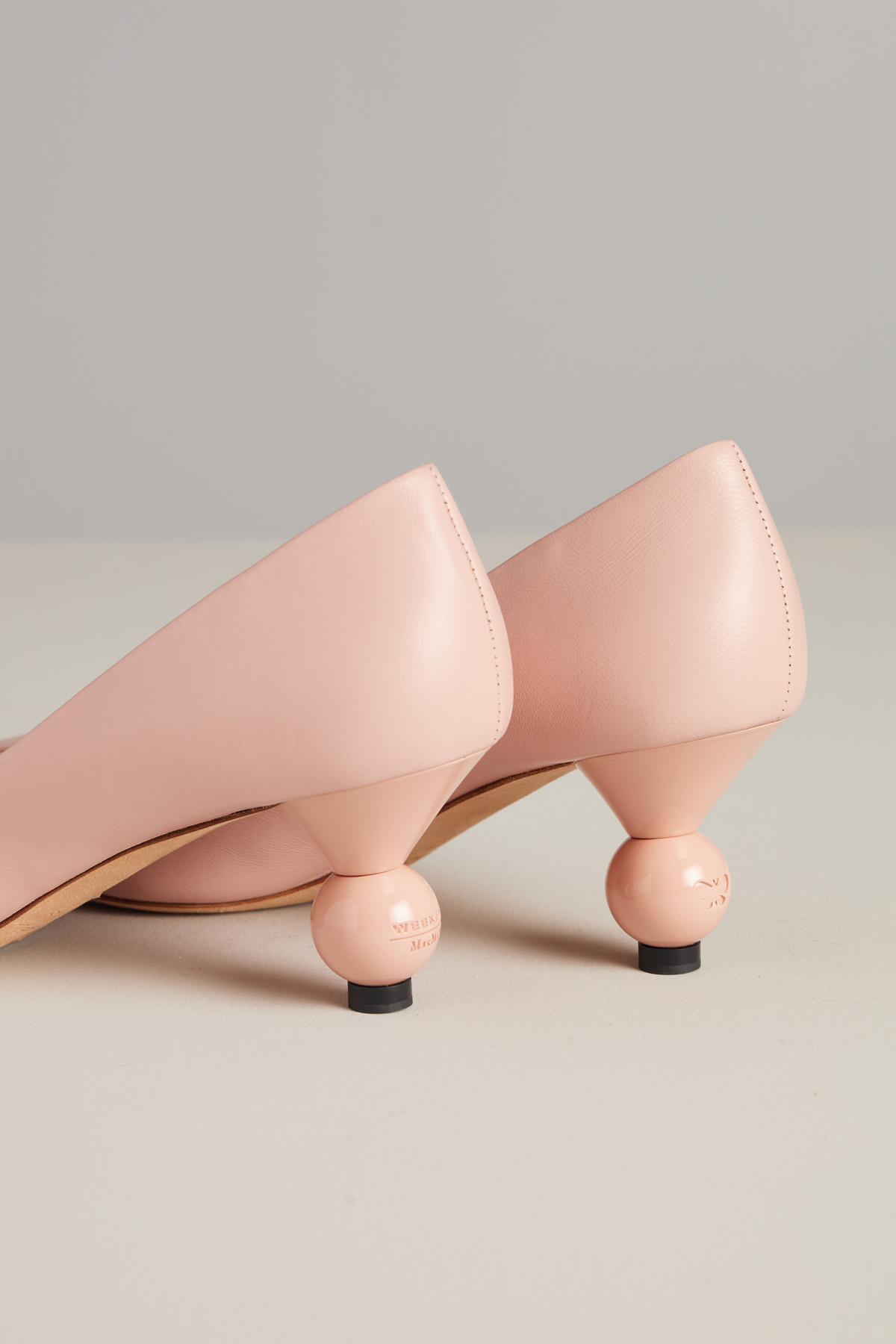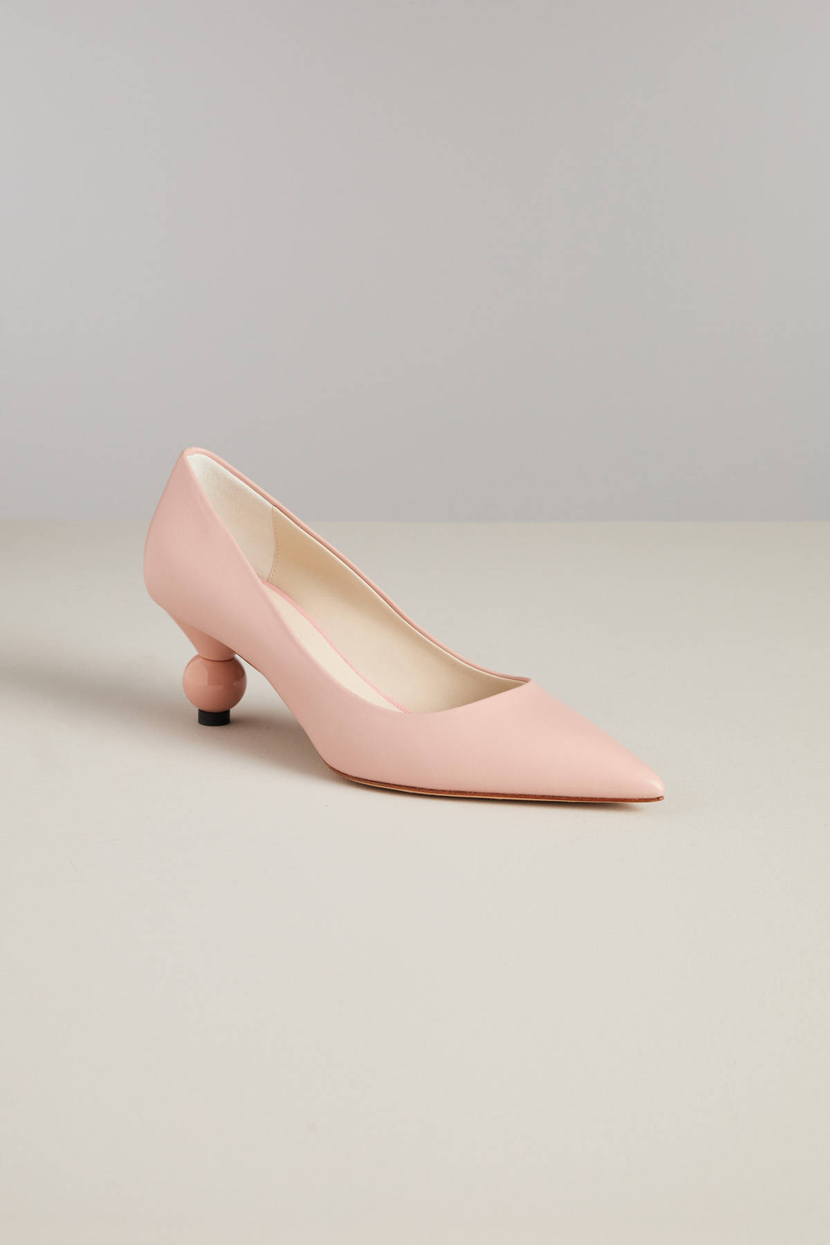 Décolleté realizzate in vera pelle, con punta affusolata e dettaglio di boule nel tacco. Suola in cuoio.