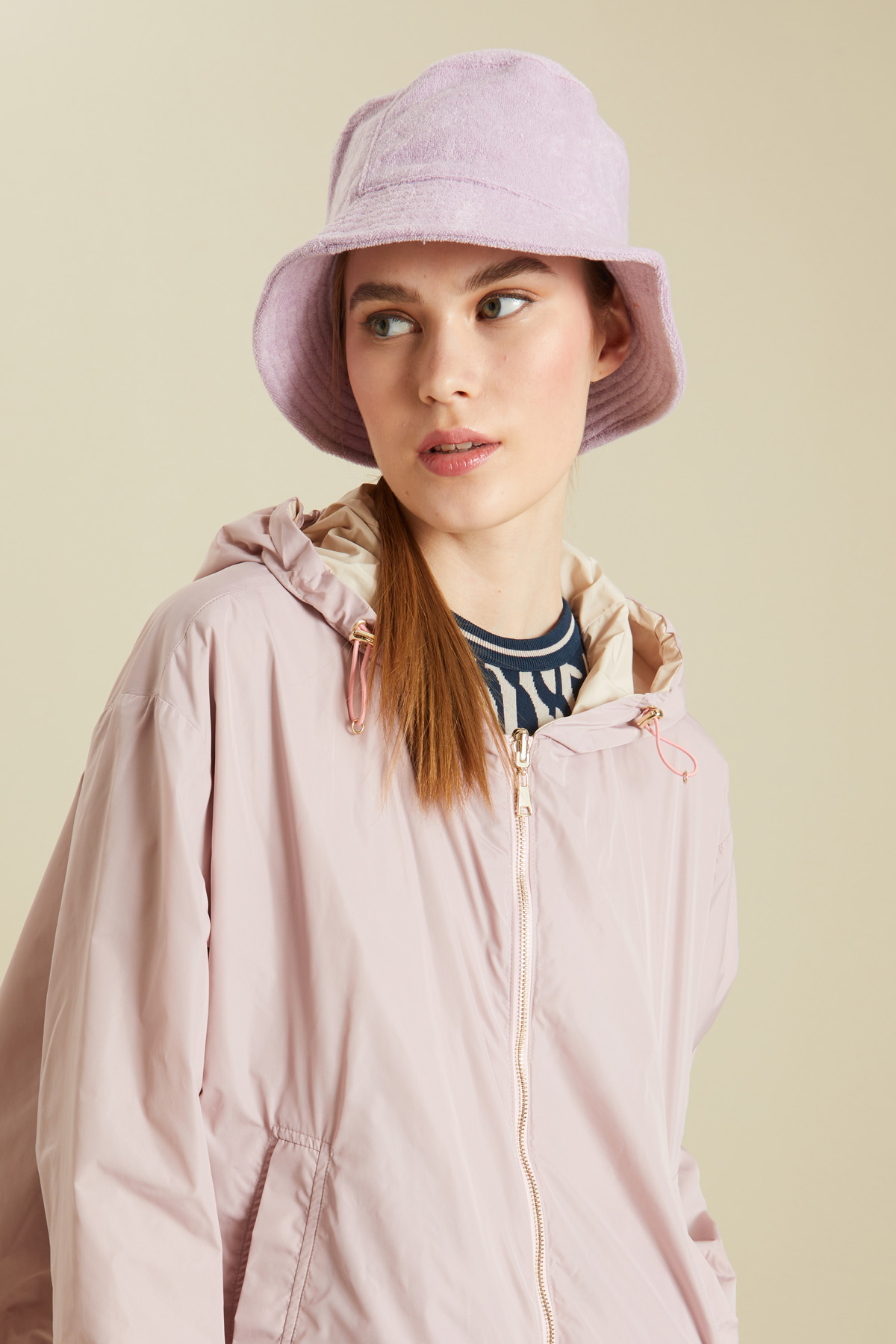 Cappello da pescatore realizzato in tessuto effetto spugna, con taschino applicato sul davanti e interno foderato.