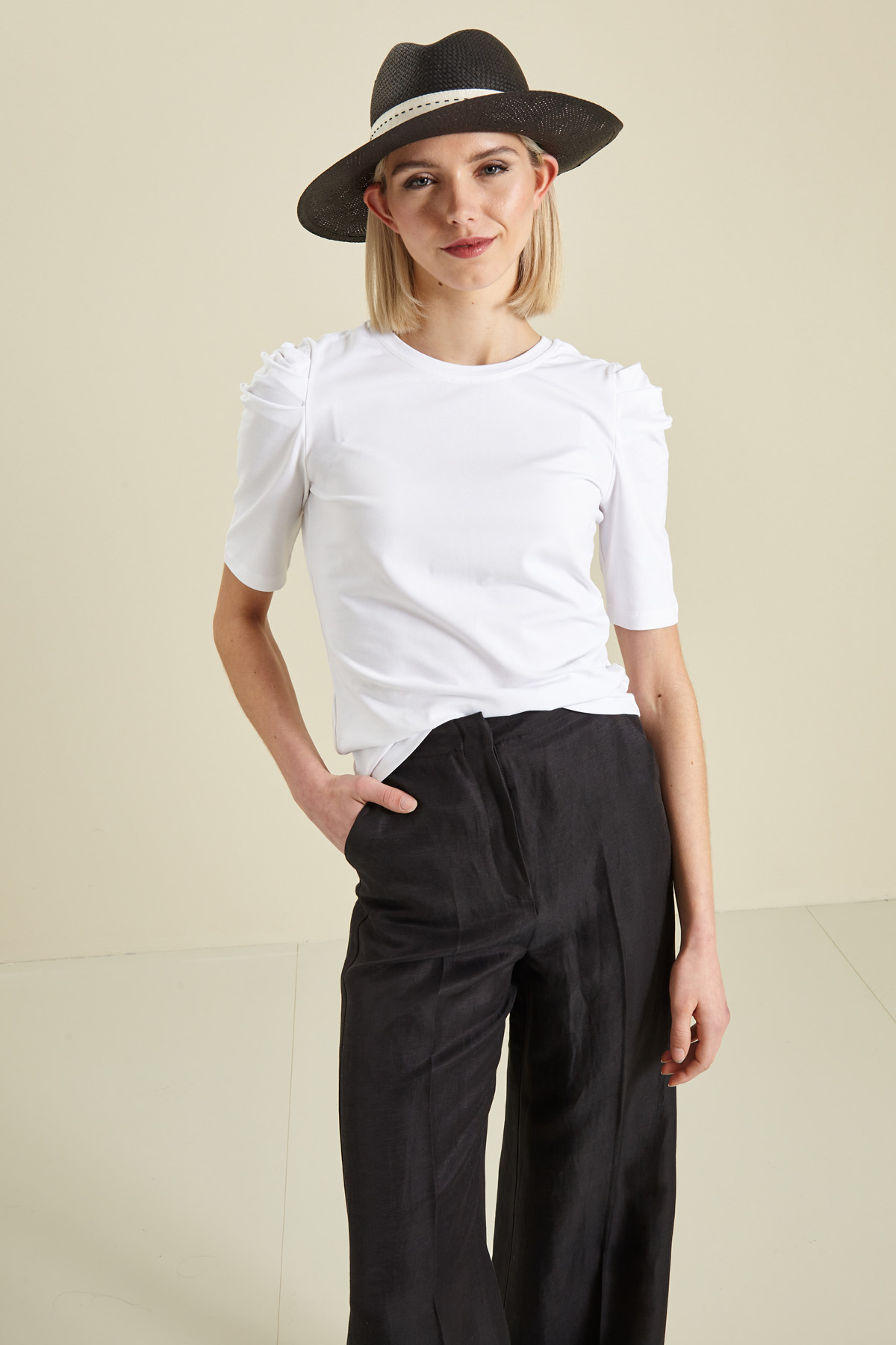 - Modello in carta; nastro parasudore 65% cotone, 35% poliestere; con particolari in 65% cotone, 35% poliestere.
