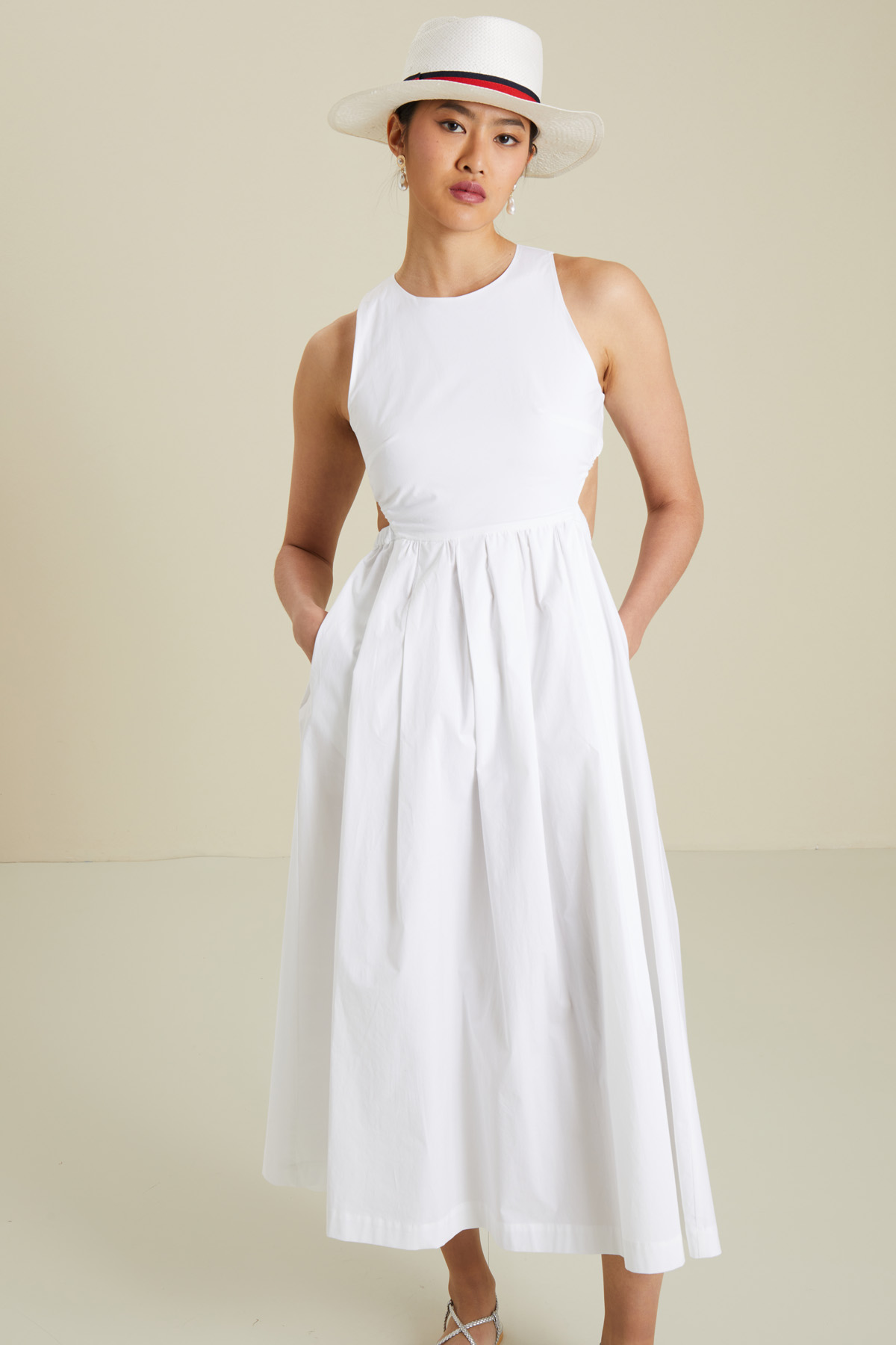- Modello in carta; nastro parasudore 65% cotone, 35% poliestere; con particolari in 65% cotone, 35% poliestere.