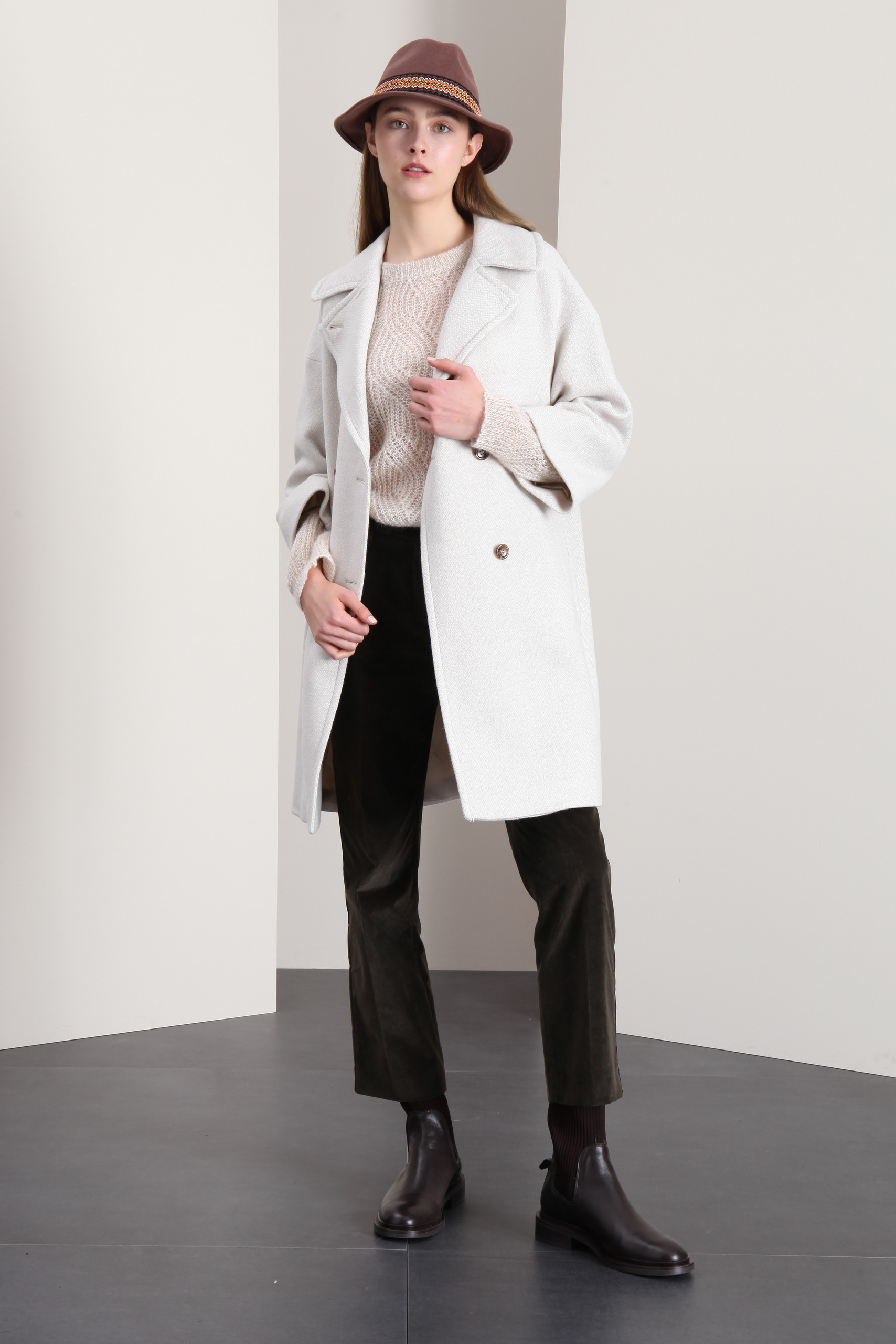 - Filato 100% lana; con particolari in 100% poliestere; nastro parasudore 60% cotone, 40% acetato.