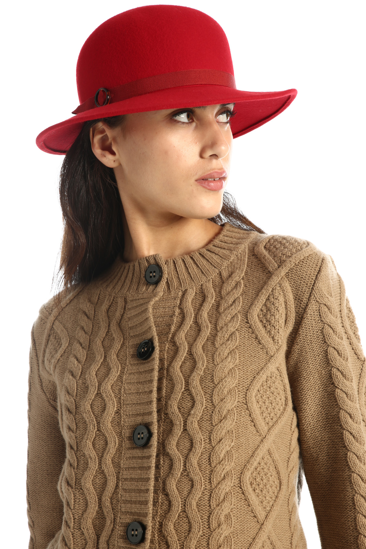 Cappello con cupola arrotondata realizzato in feltro di pura lana, con dettaglio in nastro e fibbia.