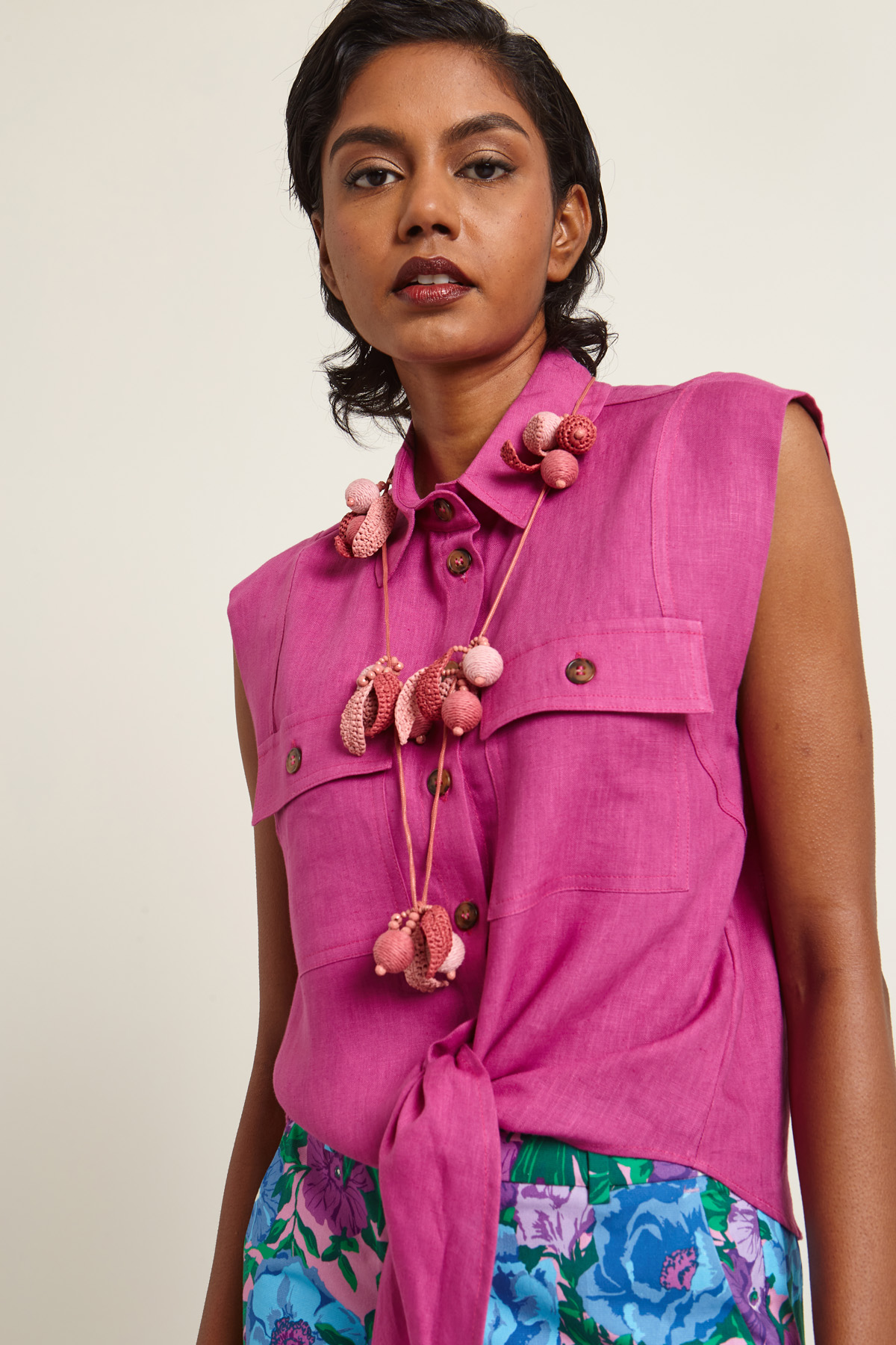 - Modello in carta tessile, cotone, viscosa; con particolari in vetro.