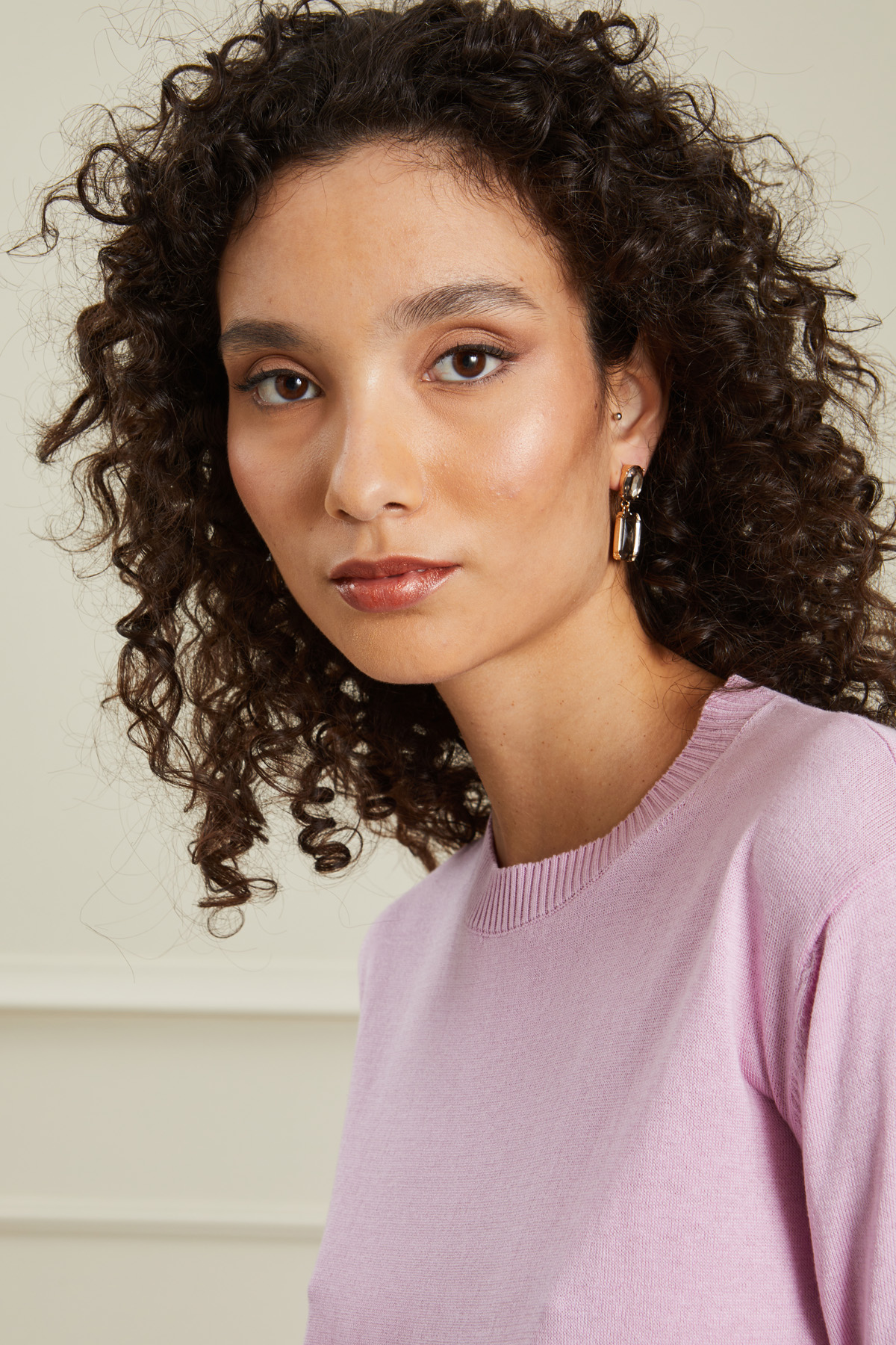 Orecchini pendenti realizzati in metallo, con pietre cabochon in vetro e chiusura a farfallina.