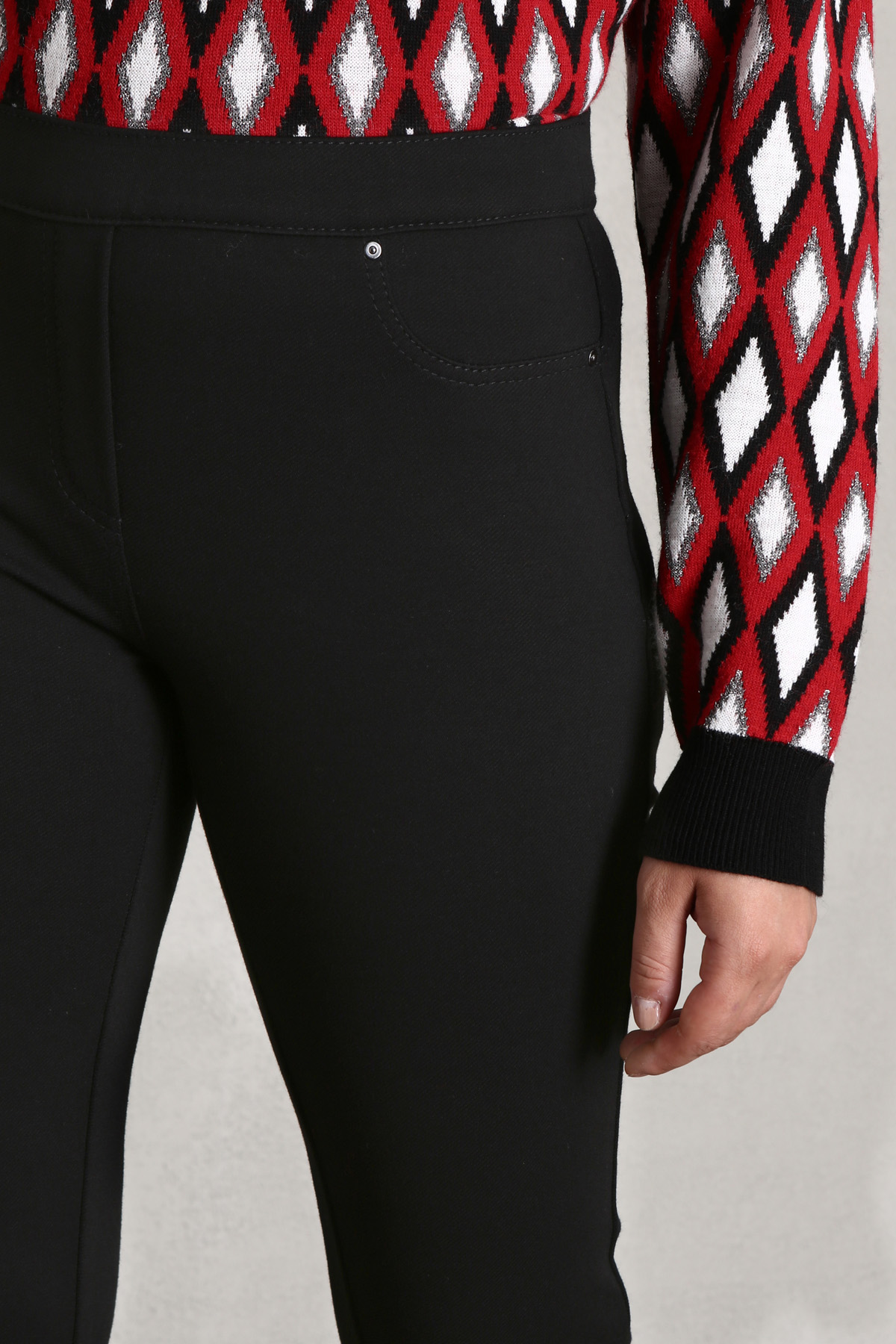 Pantaloni modello leggings realizzati in jersey di misto viscosa, con inserto elastico in vita, finte tasche davanti e tasche applicate sul retro.