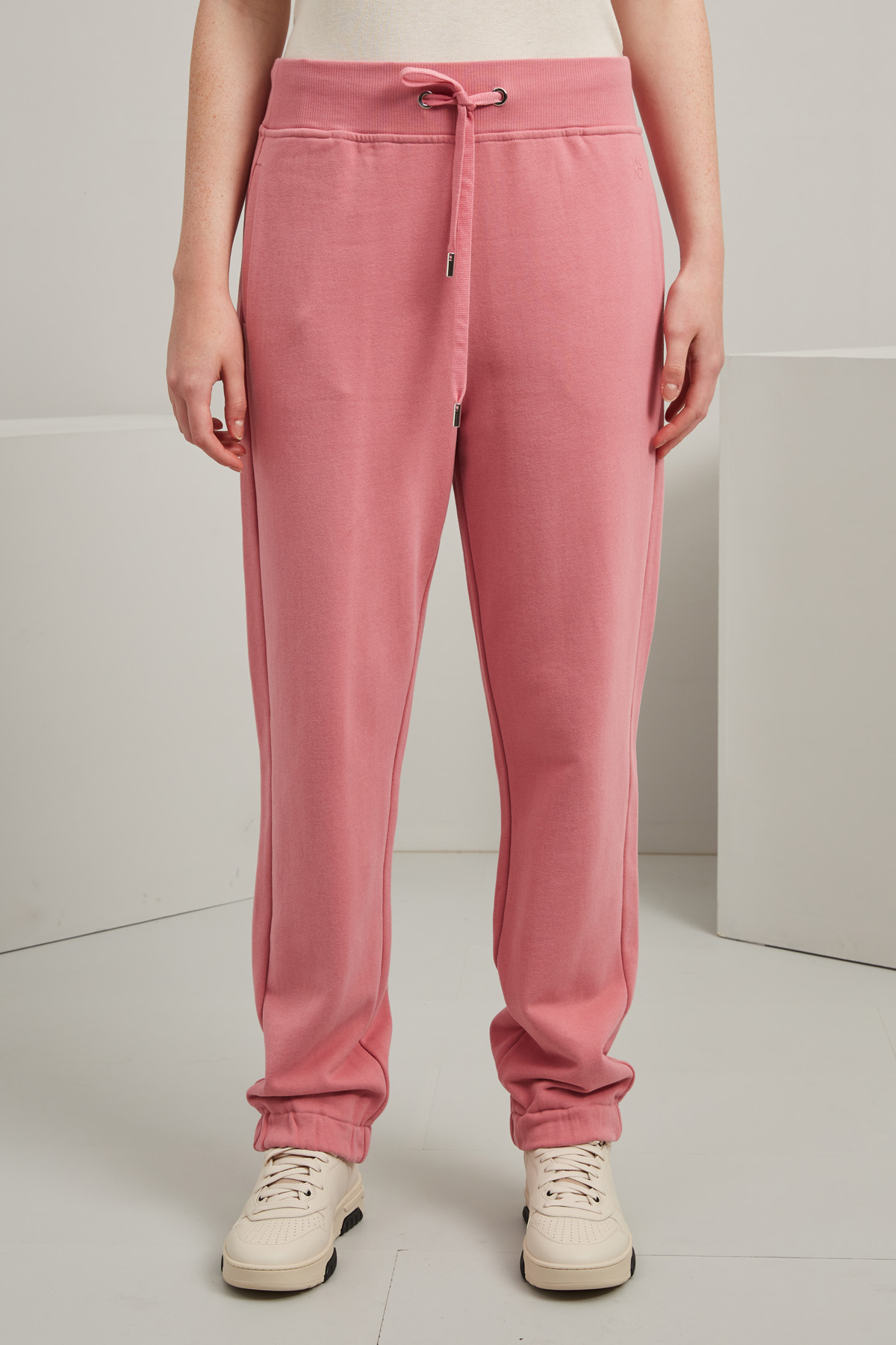 Jogger dalla linea morbida realizzati in jersey di puro cotone, con inserto elastico in vita e al fondo, coulisse e tasche laterali a filetto.