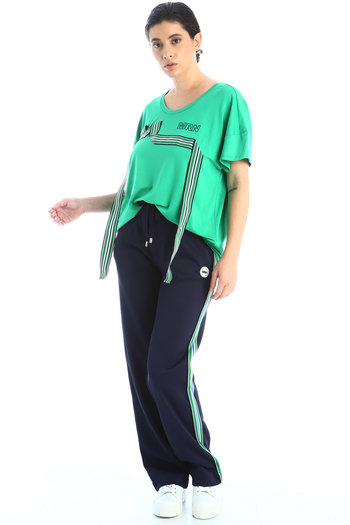 - Tessuto a maglia(jersey) 96% viscosa, 4% elastan; parte decorativa 65% viscosa, 35% cotone.