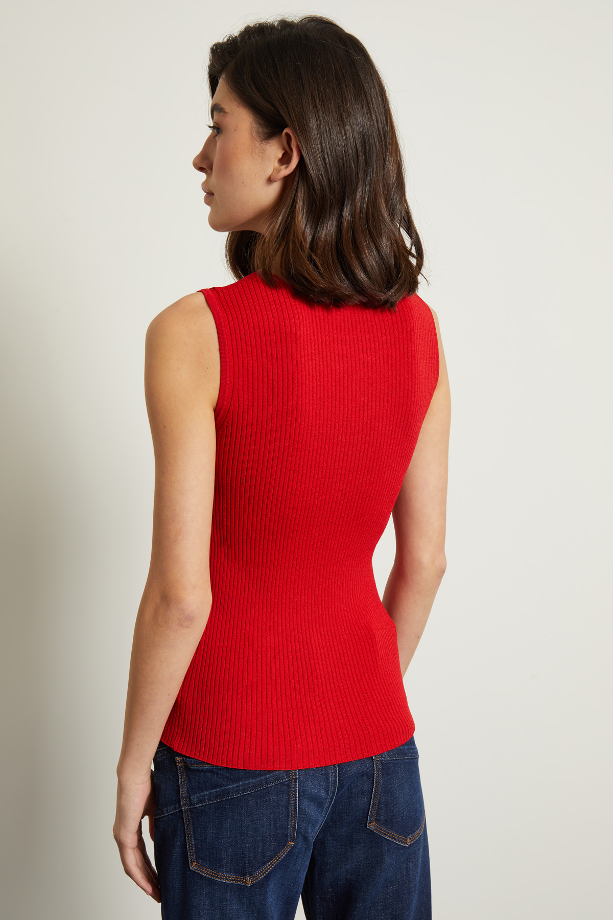 Top stile canottiera dalla linea aderente realizzato in maglia di misto viscosa a coste, con scollo a U e spalline spesse.