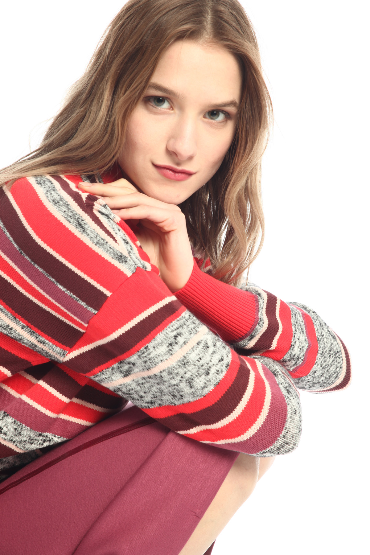 Maglia dalla linea morbida e stretta ai bordi realizzata in filato misto viscosa e lana stretch, con collo a cratere, maniche dal giro sceso e profili rifiniti a coste.