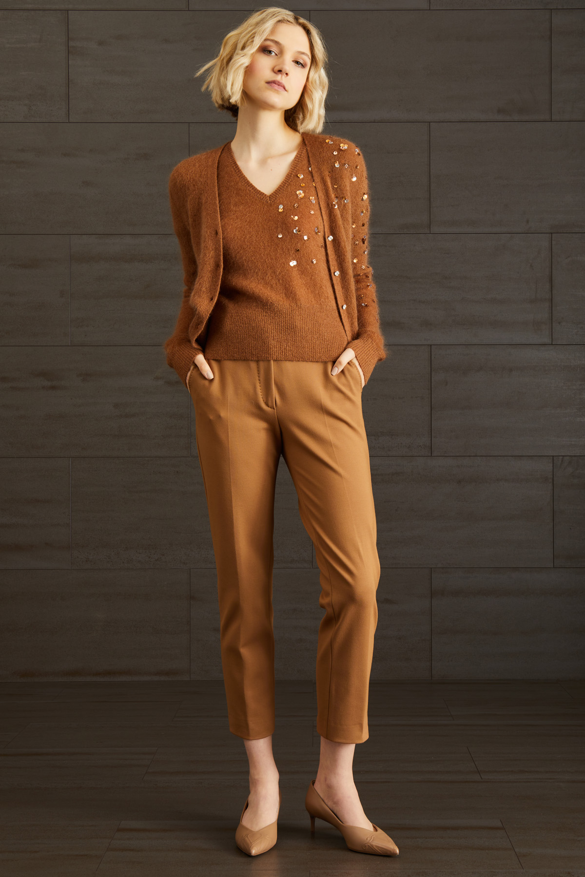 - Filato in maglia 52% mohair, 35% poliammide, 13% lana; - decorazioni escluse.