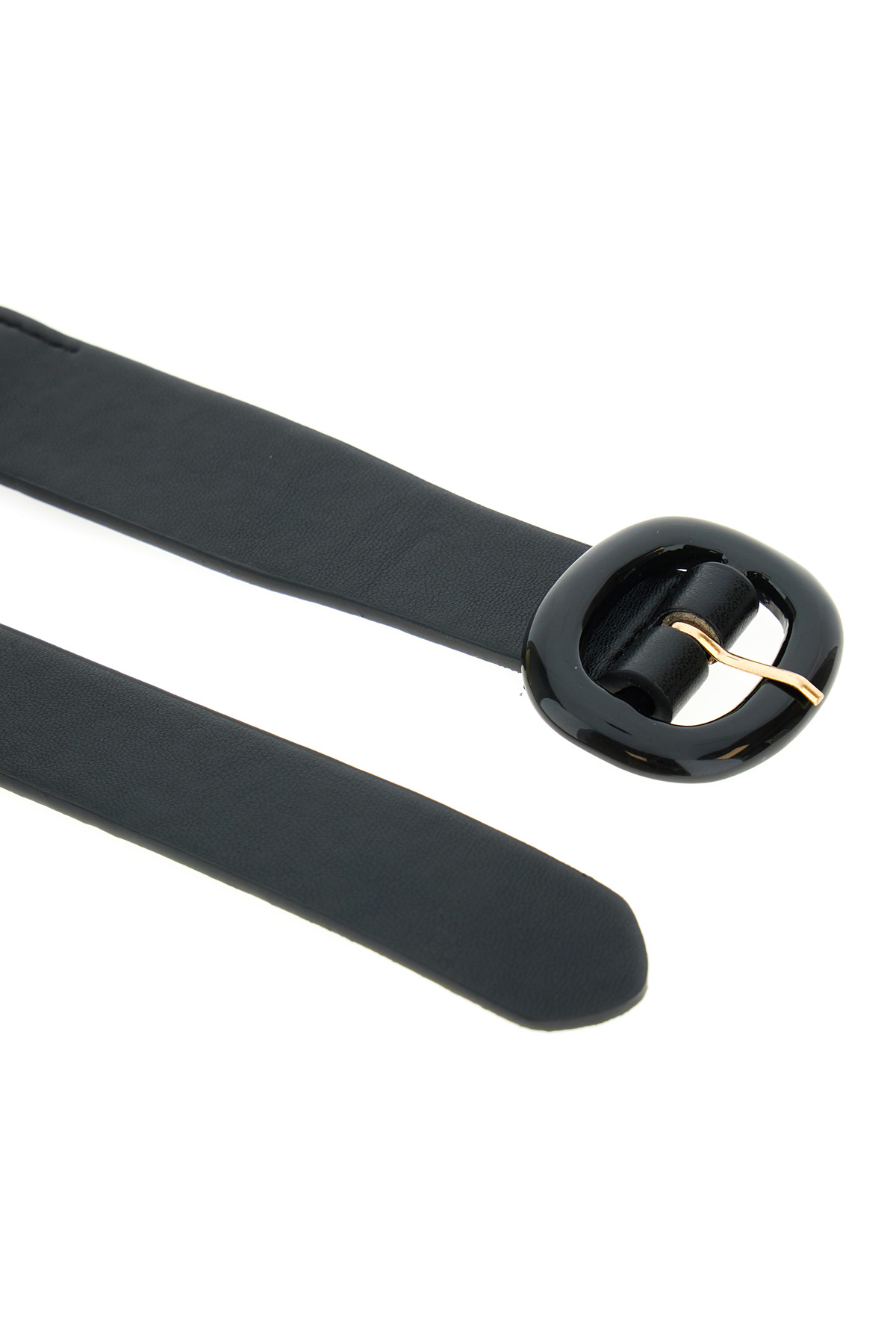 Cintura realizzata in similpelle con inserto elastico, fibbia in resina e dettagli in metallo.