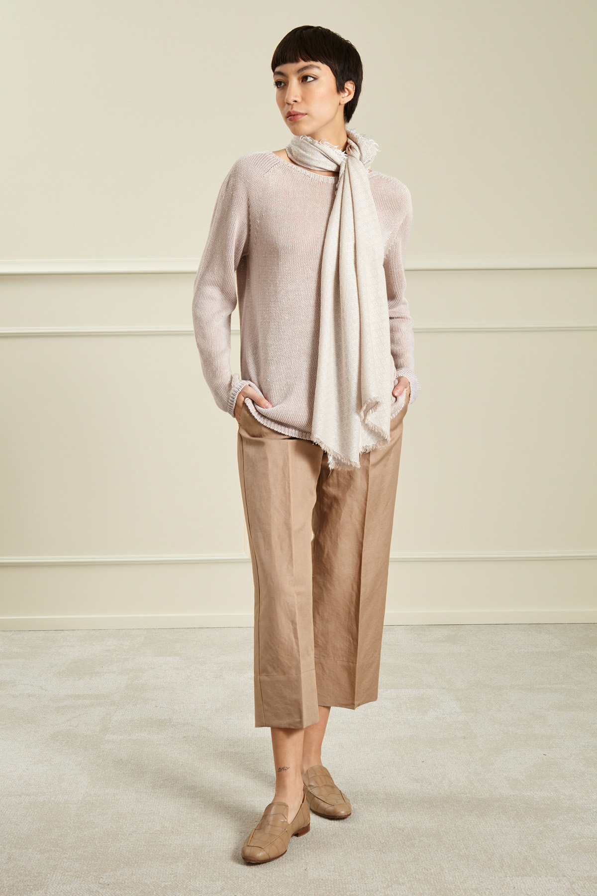 Stola realizzata in tessuto jacquard di misto viscosa con bordi sfrangiati.