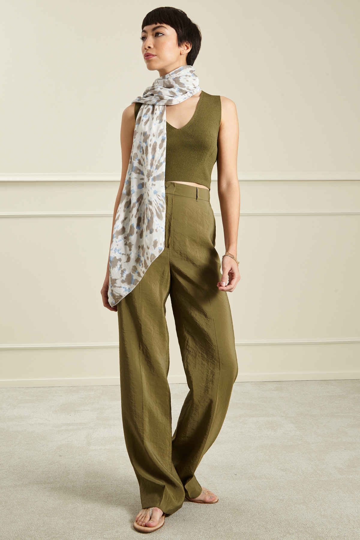 Stola realizzata in voile di cotone e seta stampata.