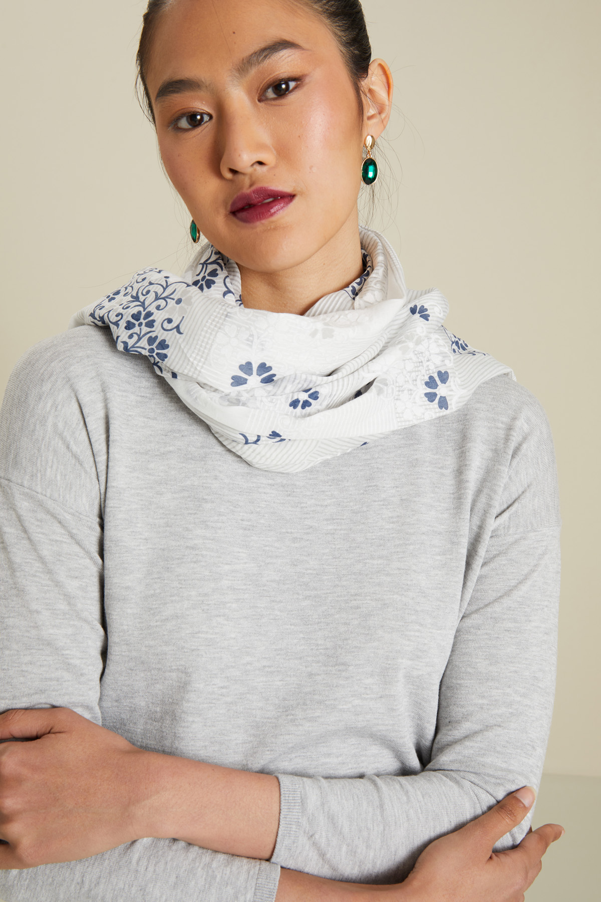 Stola realizzata in voile di cotone e seta stampata.