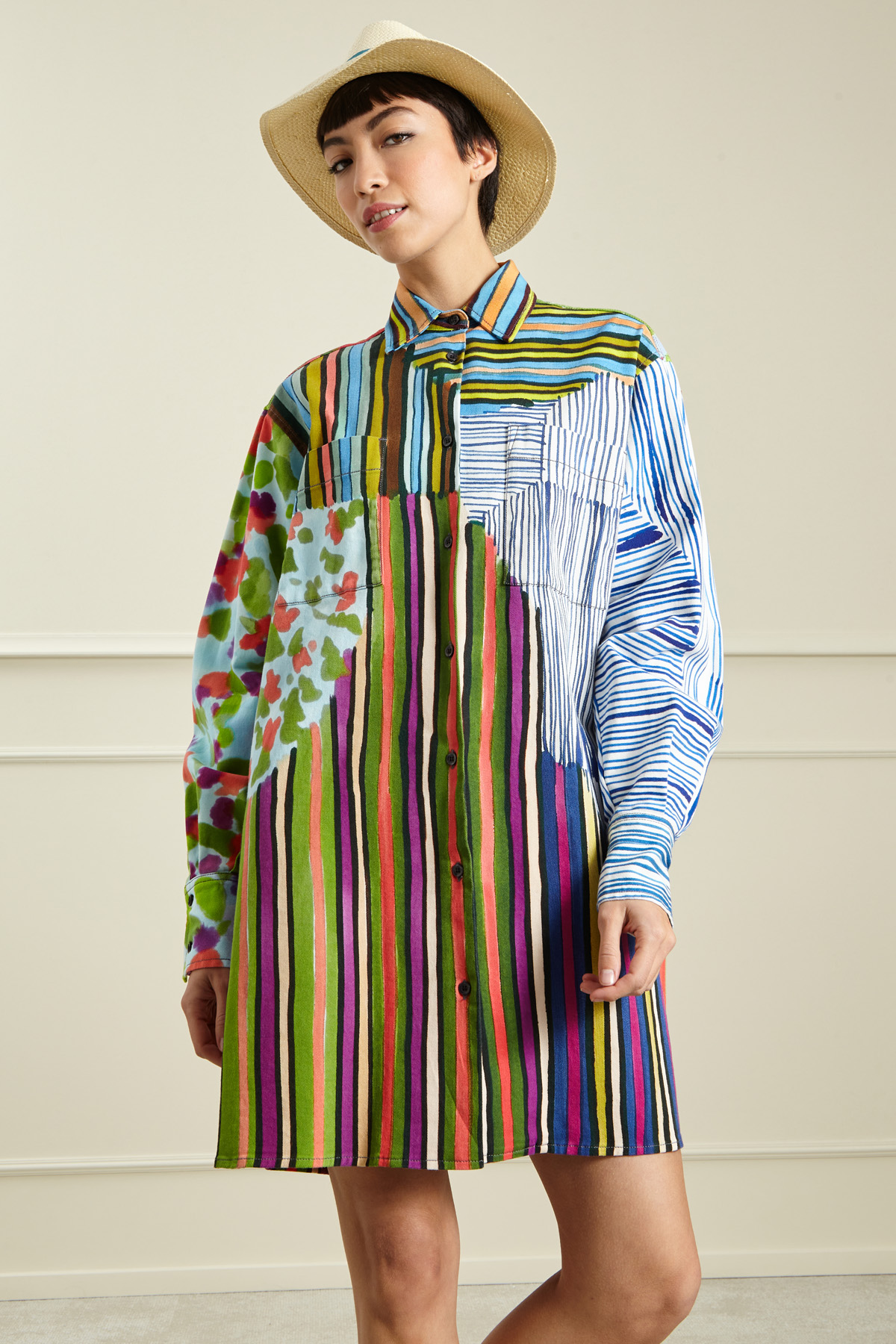 - Modello in carta; nastro parasudore 60% cotone, 40% poliestere; con particolari in 60% cotone, 30% viscosa, 10% poliammide.