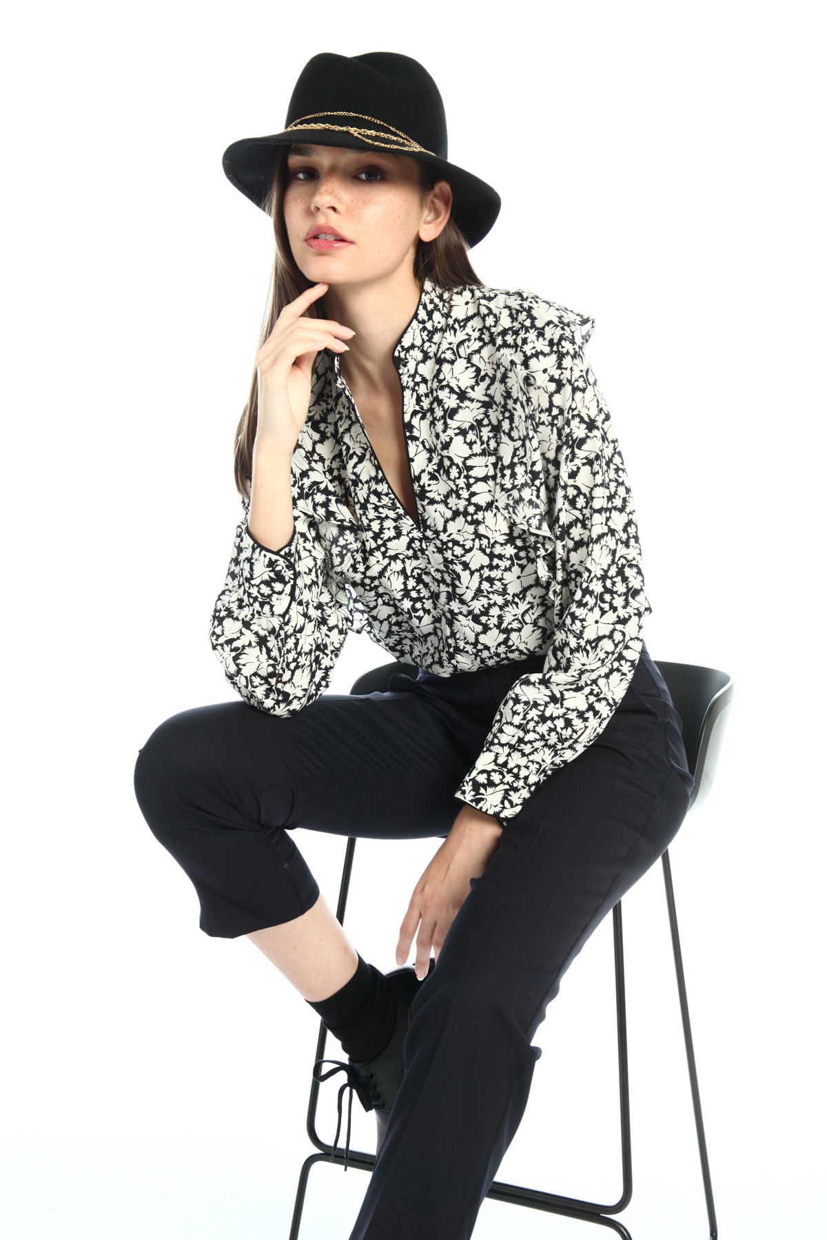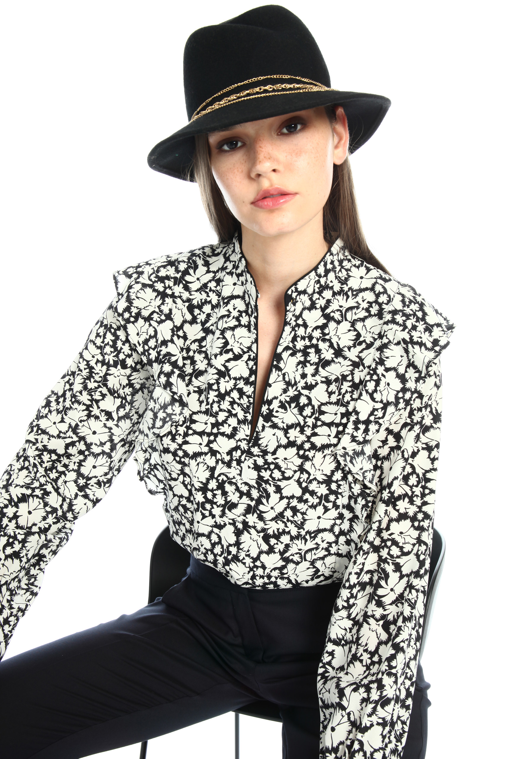 Cappello modello fedora realizzato in pura lana cotta, con dettaglio di micro catene.