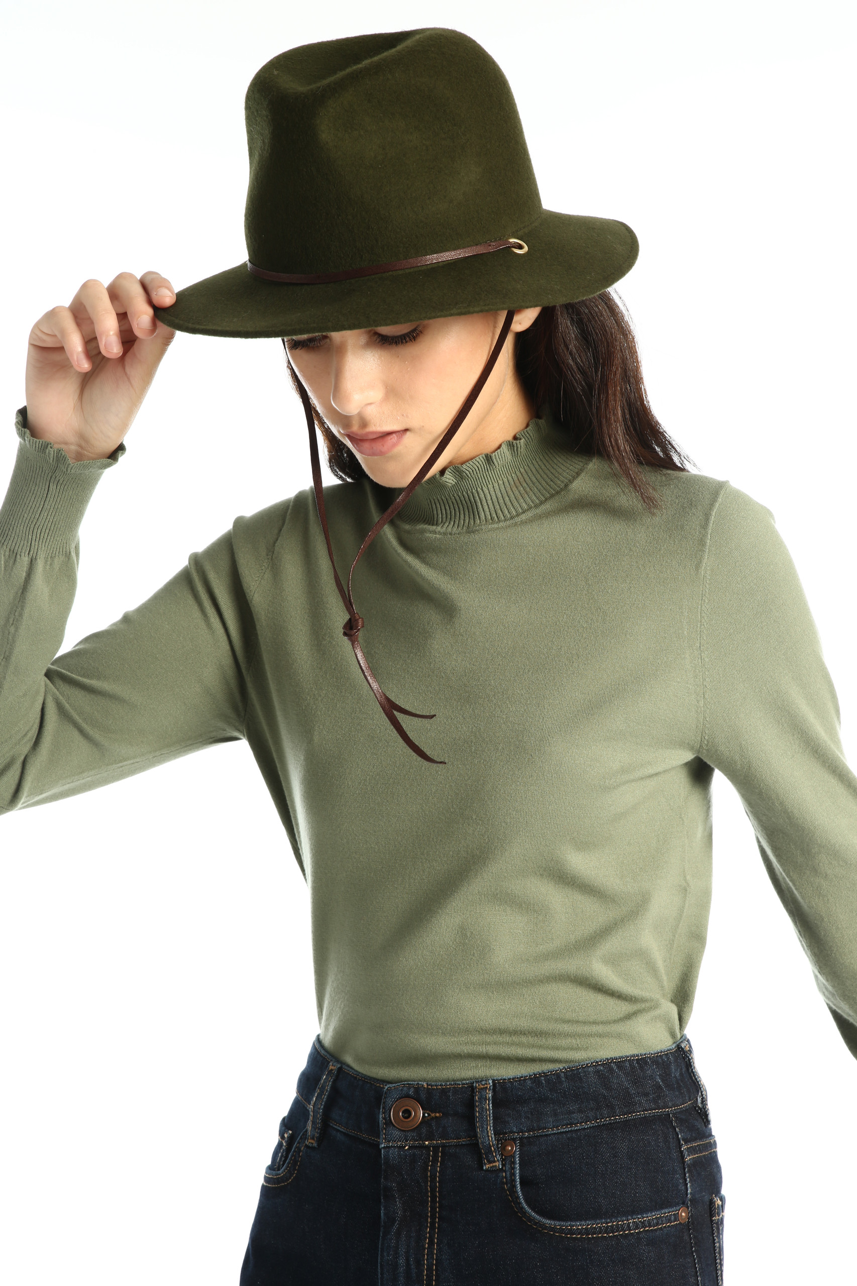 Fedora realizzato in feltro di pura lana, con cinturino in tono.
