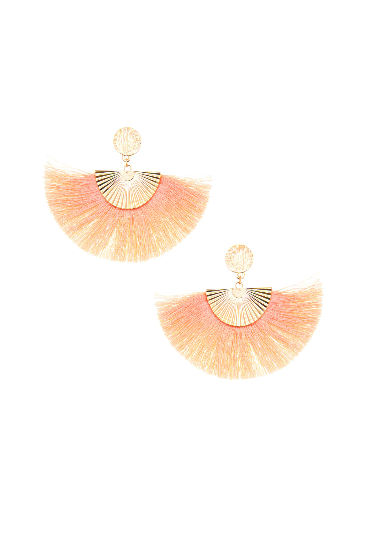 Orecchini a ventaglio realizzati in metallo con dettaglio di frange e chiusura a farfallina.