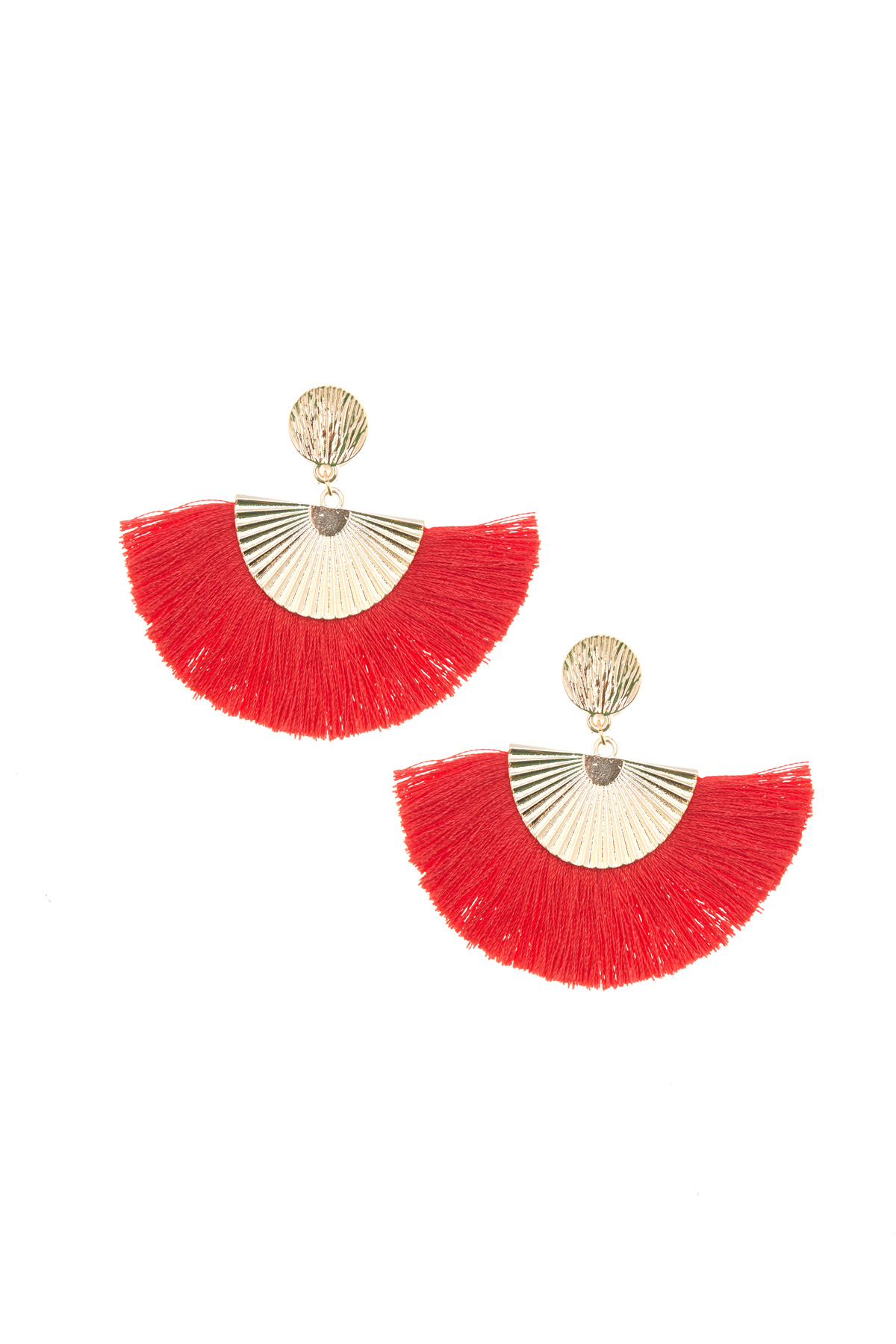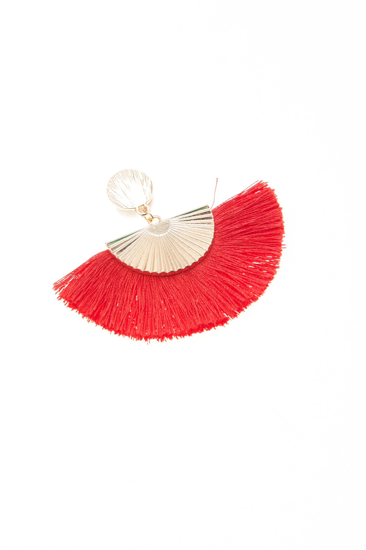 Orecchini a ventaglio realizzati in metallo con dettaglio di frange e chiusura a farfallina.