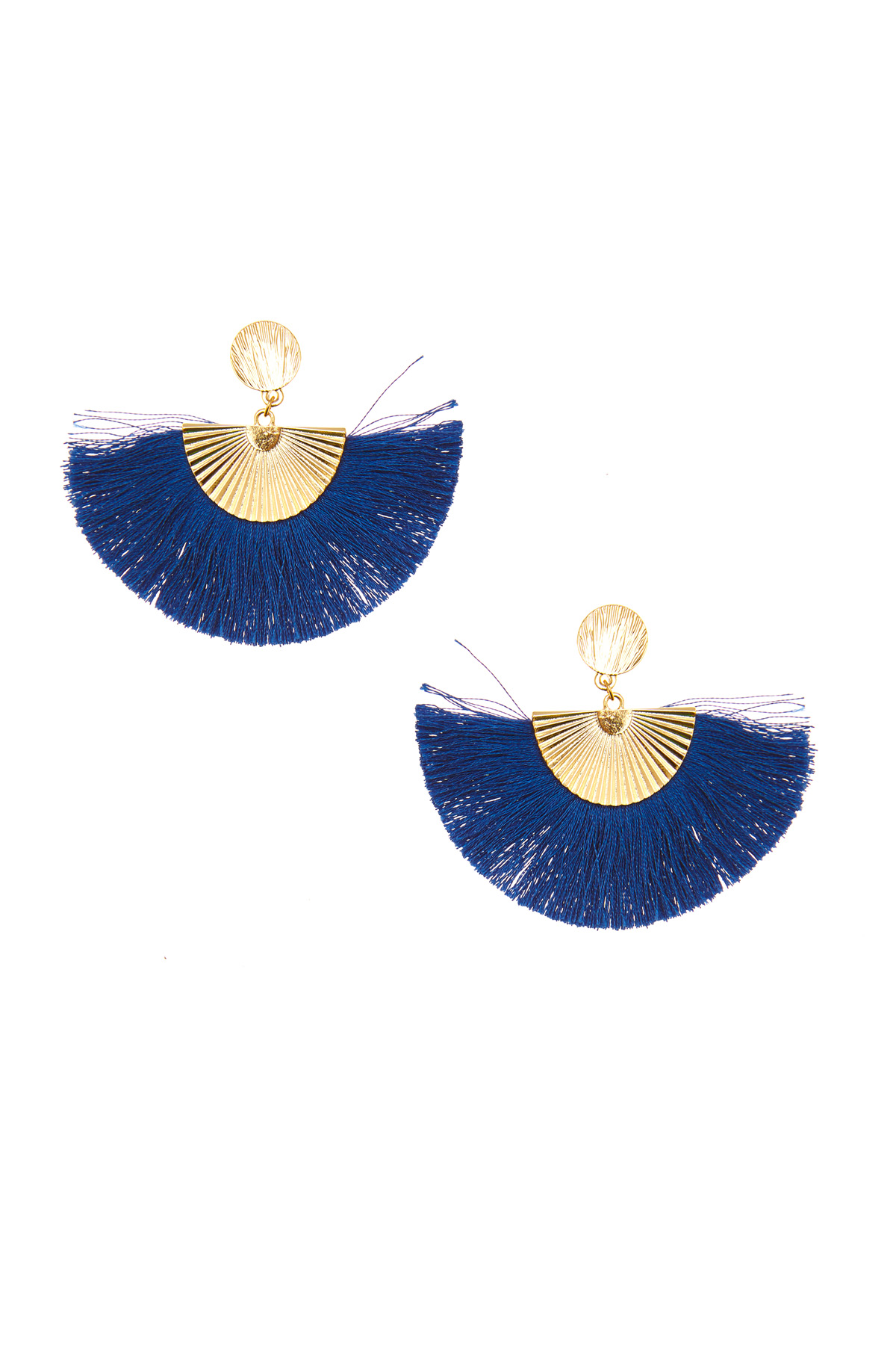 Orecchini a ventaglio realizzati in metallo con dettaglio di frange e chiusura a farfallina.