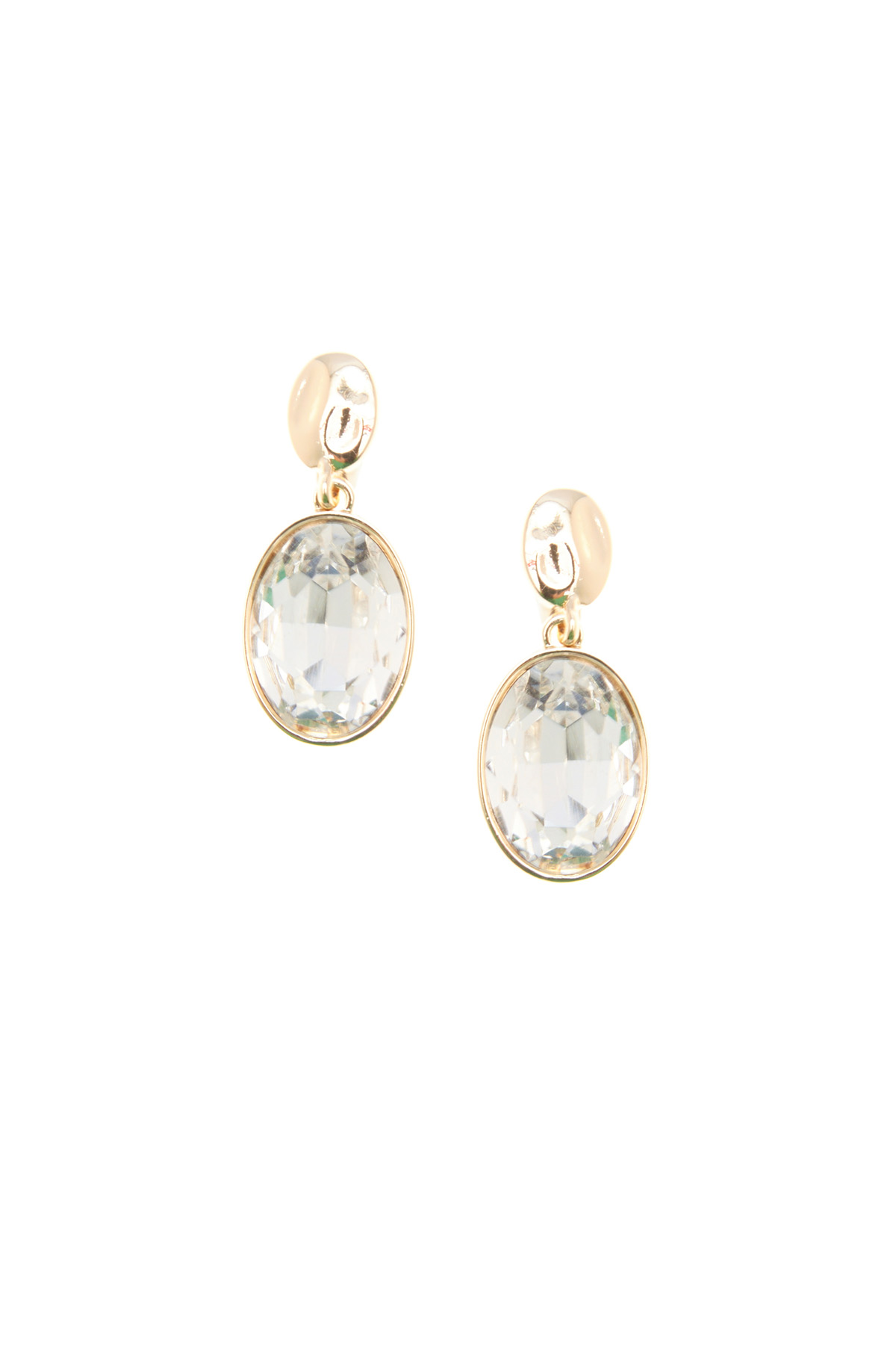 Orecchini pendenti realizzati in metallo con maxi strass geometrico e chiusura a farfallina.