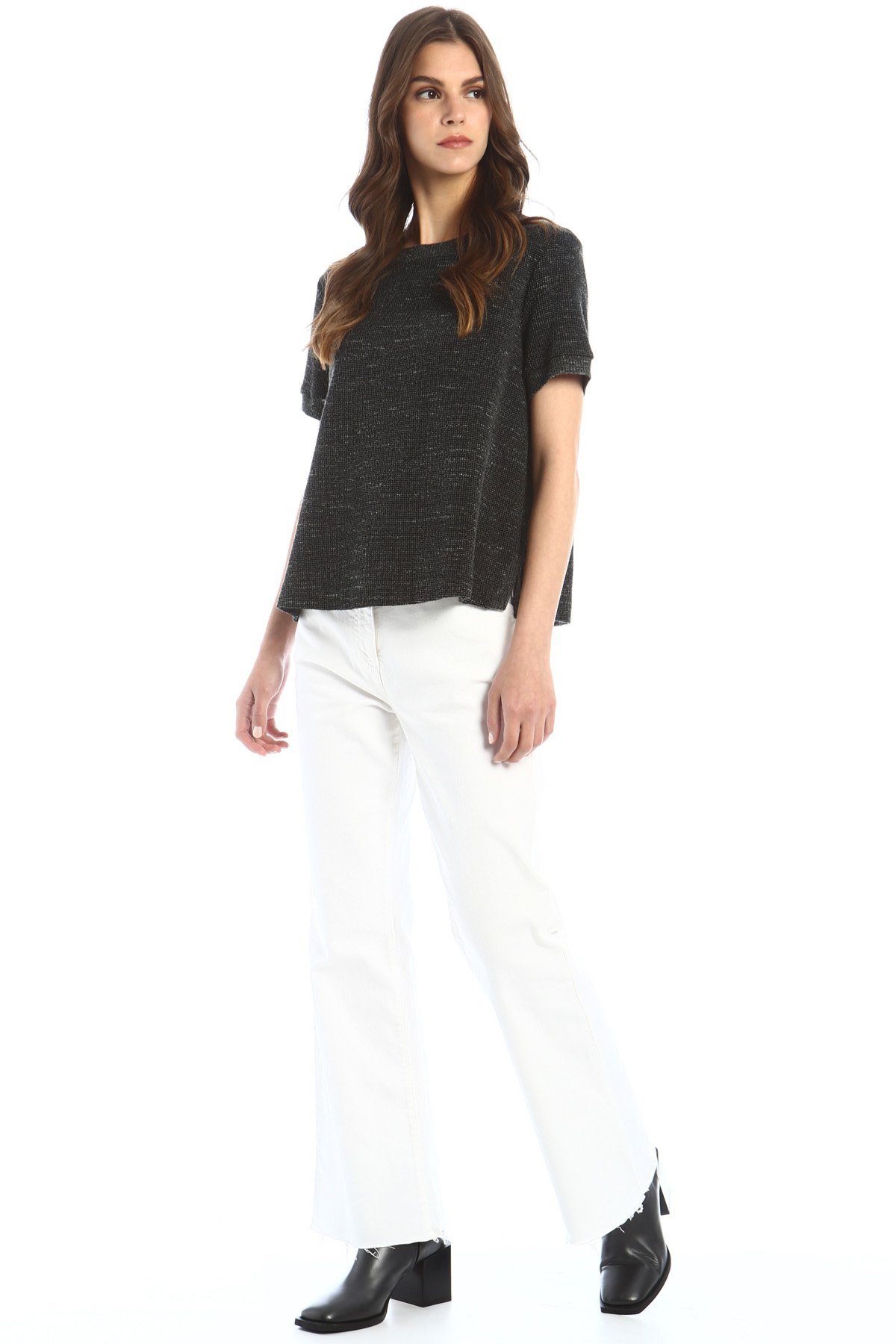 T-shirt dalla linea morbida realizzata in jersey effetto tweed in misto cotone, con scollo a giro e maniche corte.