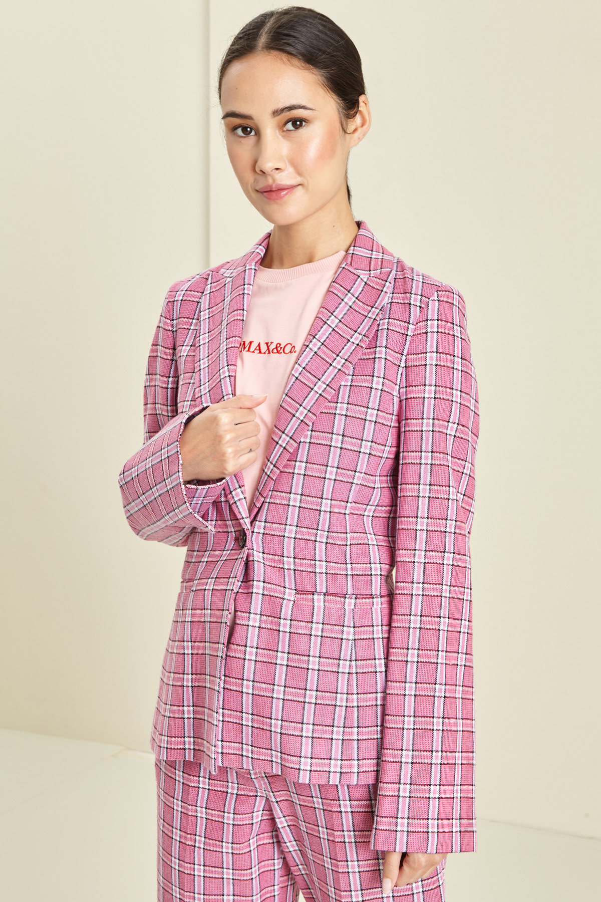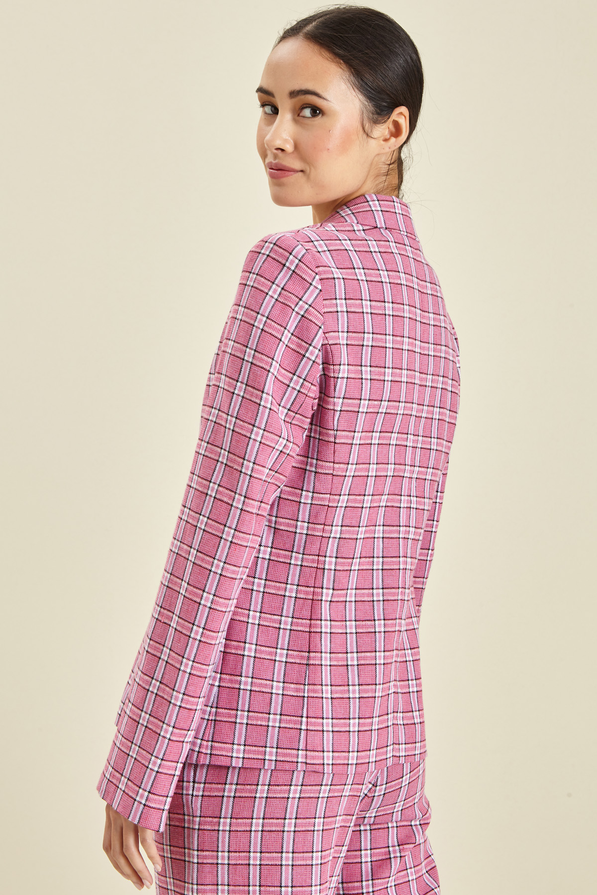 Blazer dalla linea sfiancata realizzato in tela di lino e cotone, con collo a rever, piccolo spacco a fondo manica, tasche a filetto laterali e chiusura monopetto con bottone. Capo semifoderato.