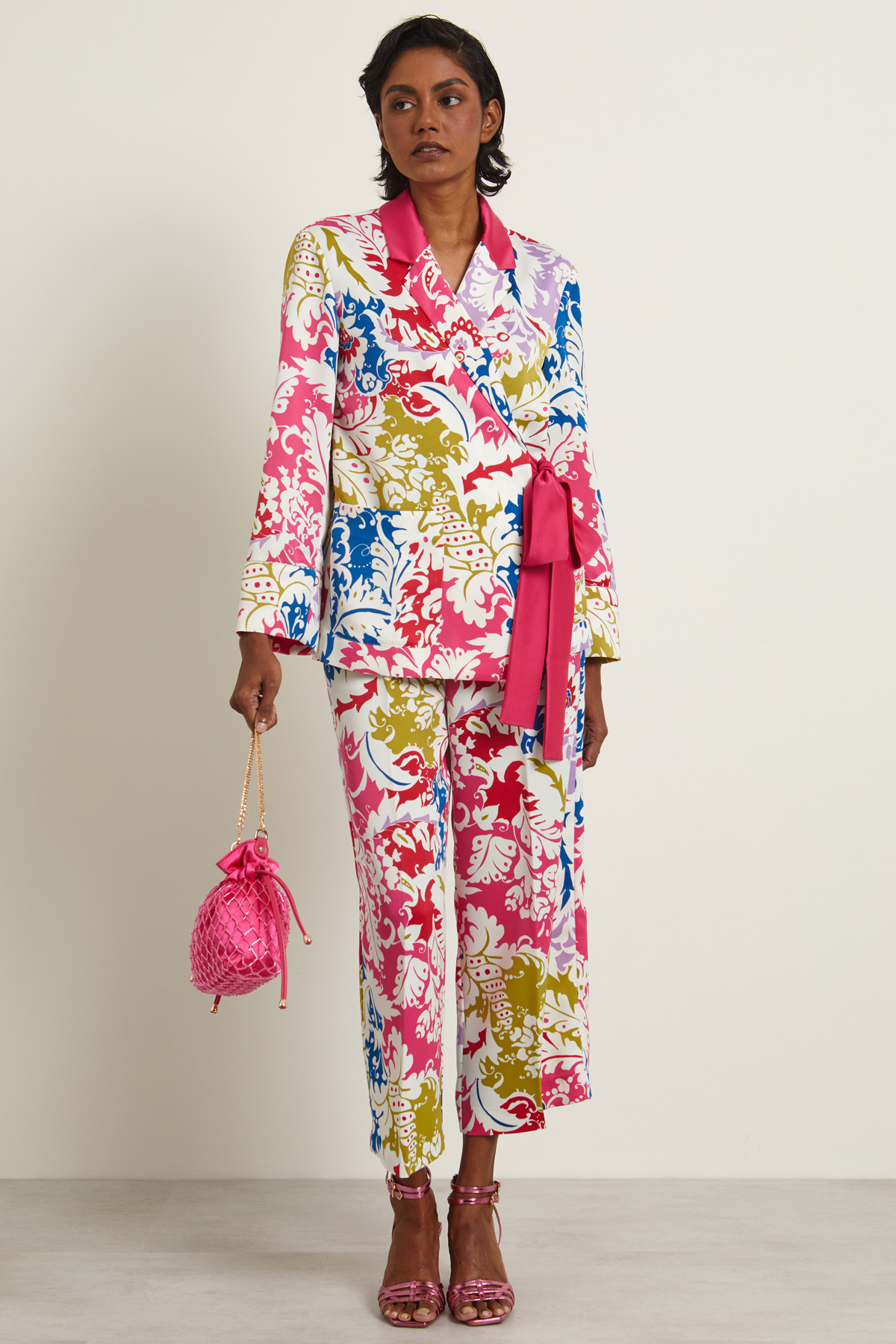Blazer dalla linea dritta realizzato in envers satin con collo rever, maniche lunghe, tasche applicate e spacco nel retro. Chiusura tramite lacci da annodare. Capo sfoderato.