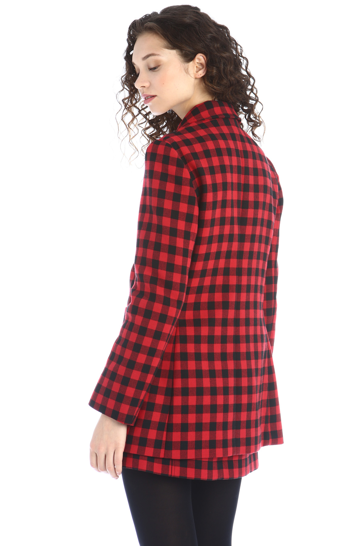 Blazer dalla linea dritta realizzato in tessuto di misto cotone tinto filo, con rever, maniche lunghe, tasche applicate sul davanti e allacciatura doppiopetto tramite bottoni. Capo semifoderato.