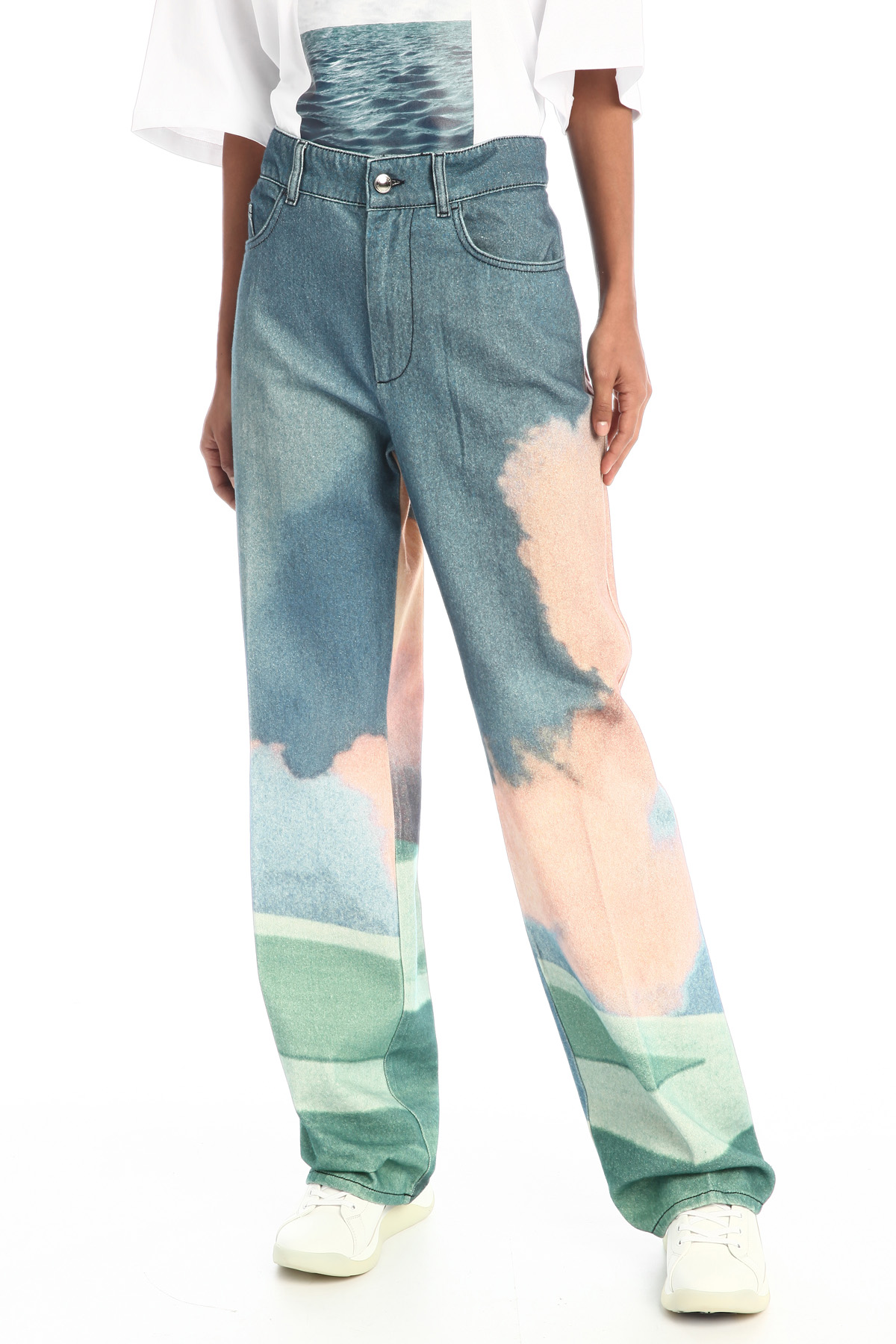 Pantaloni dalla linea dritta realizzati in bull di puro cotone stampato, con passanti in vita, cinque tasche e allacciatura tramite zip nascosta e bottone.