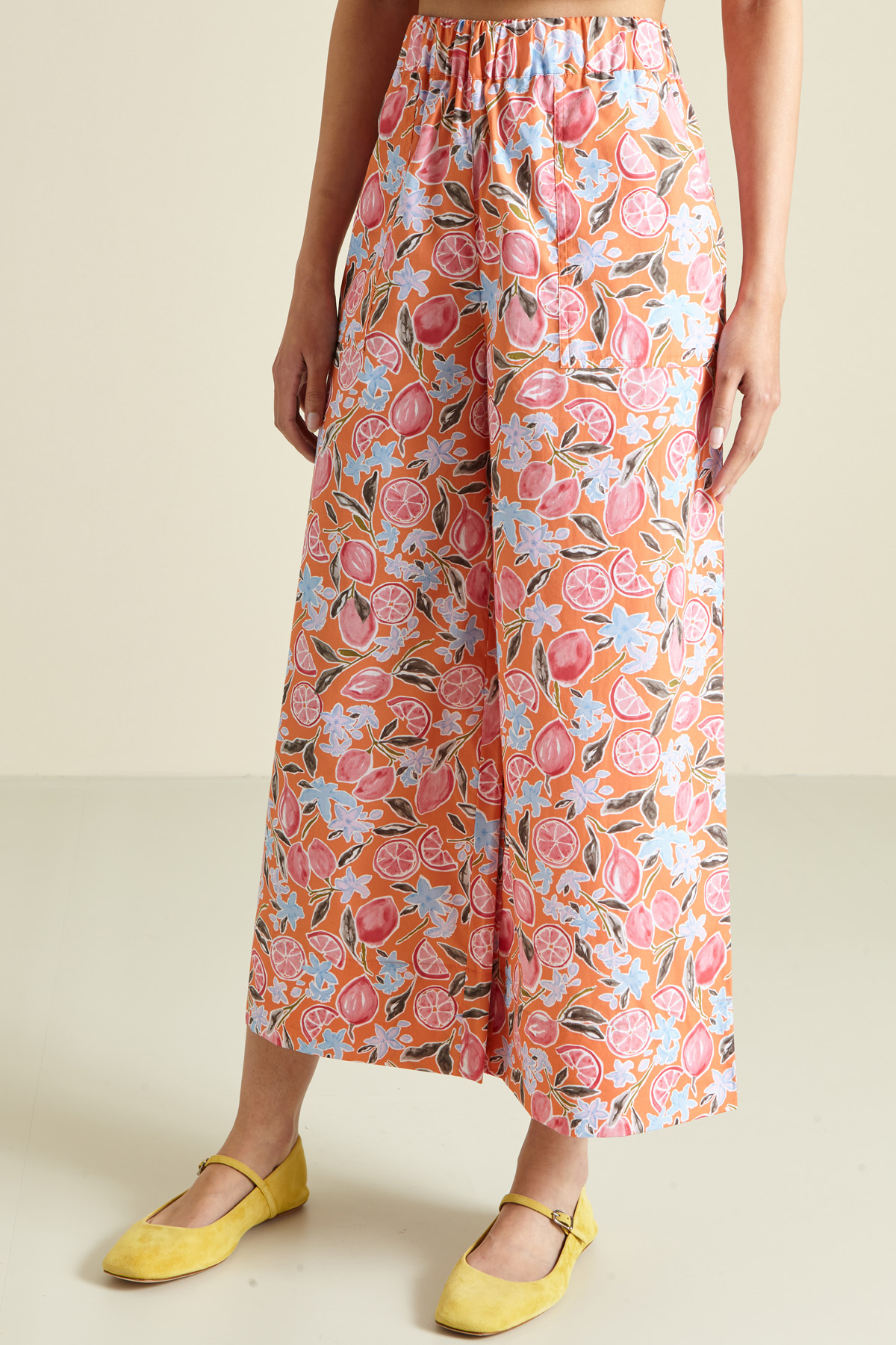 Pantaloni cropped realizzati in popeline di puro cotone, con inserto elastico in vita e tasche alla francese applicate ai fianchi