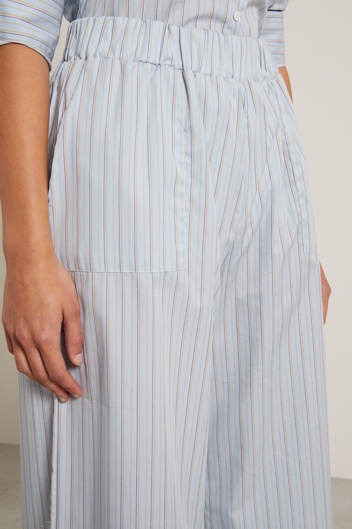 Pantaloni dalla linea svasata realizzati in popeline di puro cotone con inserto elastico in vita e tasche applicate.