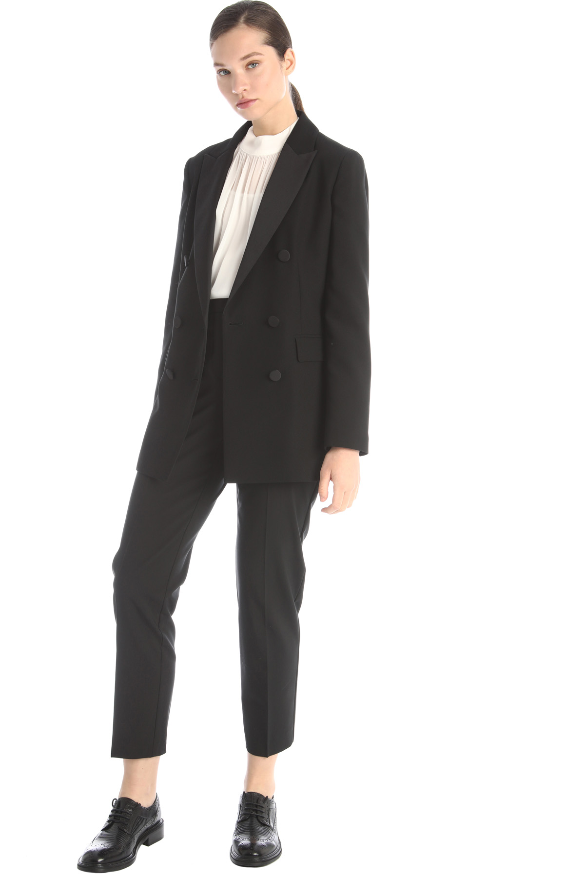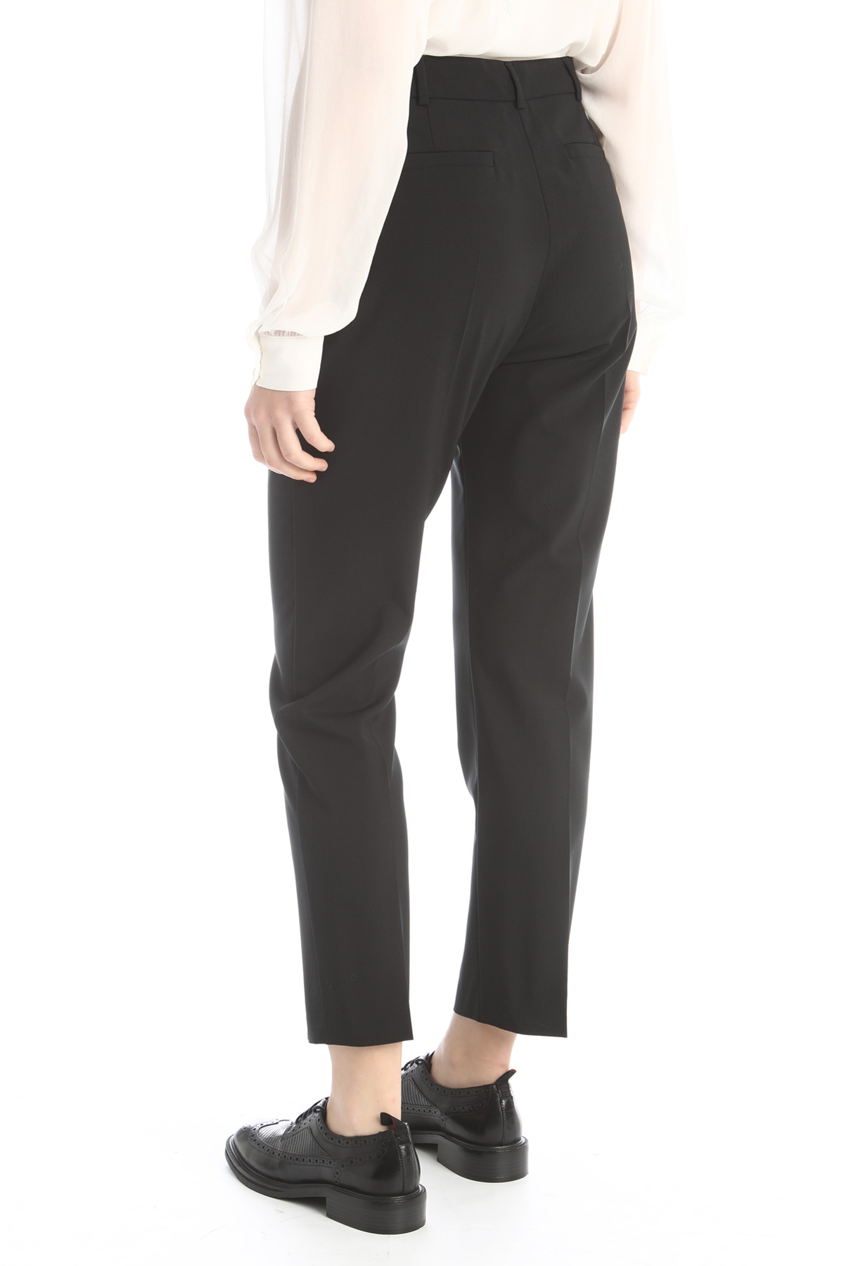 Pantaloni a sigaretta dalla linea dritta realizzati in tela di lana stretch, con passanti in vita, tasche laterali alla francese e allacciatura nascosta tramite zip, bottone e gancio.