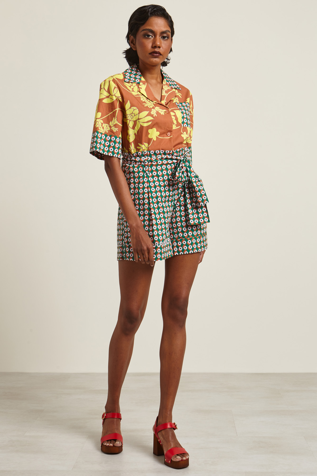 Shorts a vita alta dalla linea dritta realizzati in popeline di puro cotone con passanti in vita e tasche alla francese. Allacciatura tramite zip invisibile sul fianco e cintura coordinata.