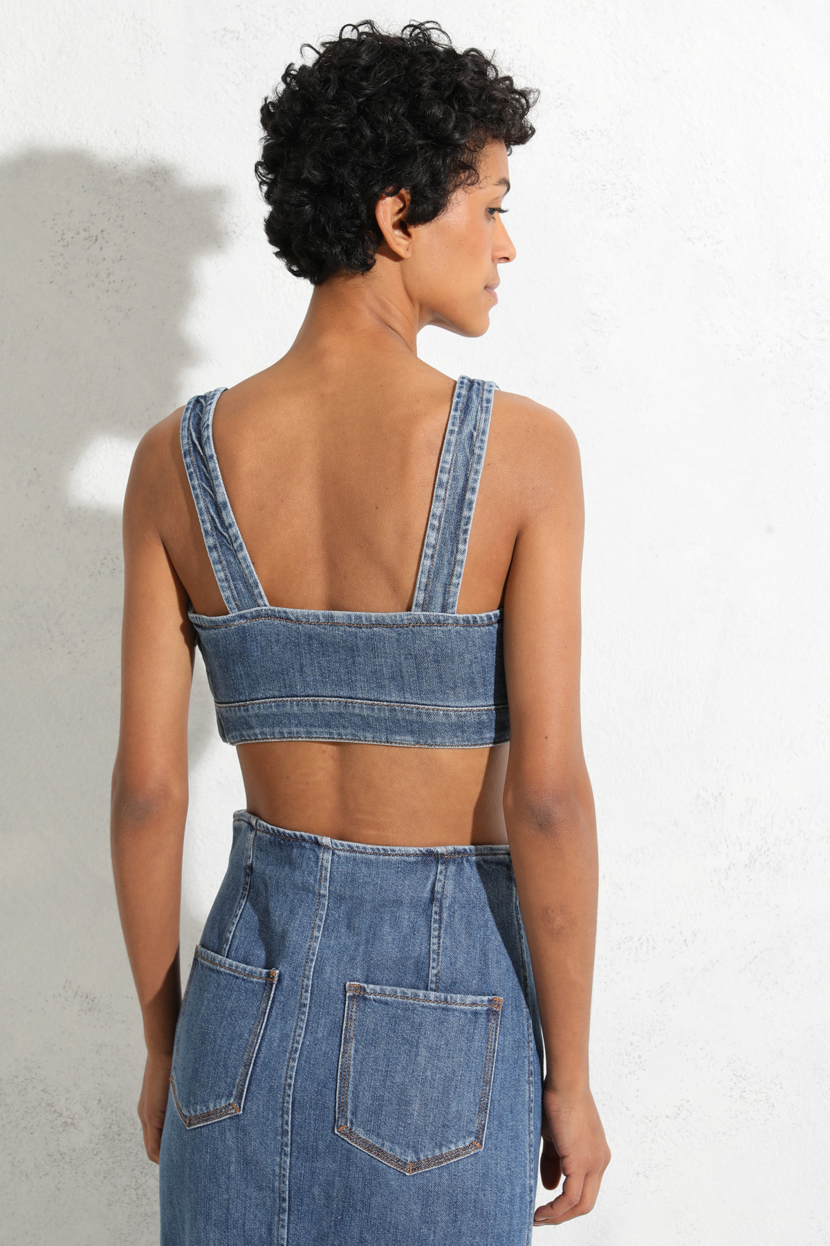 Top cropped in denim