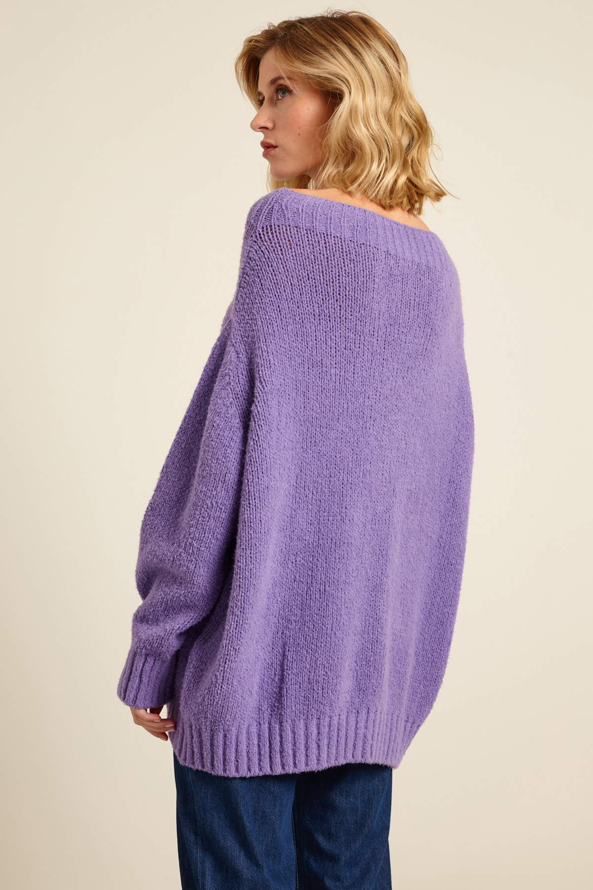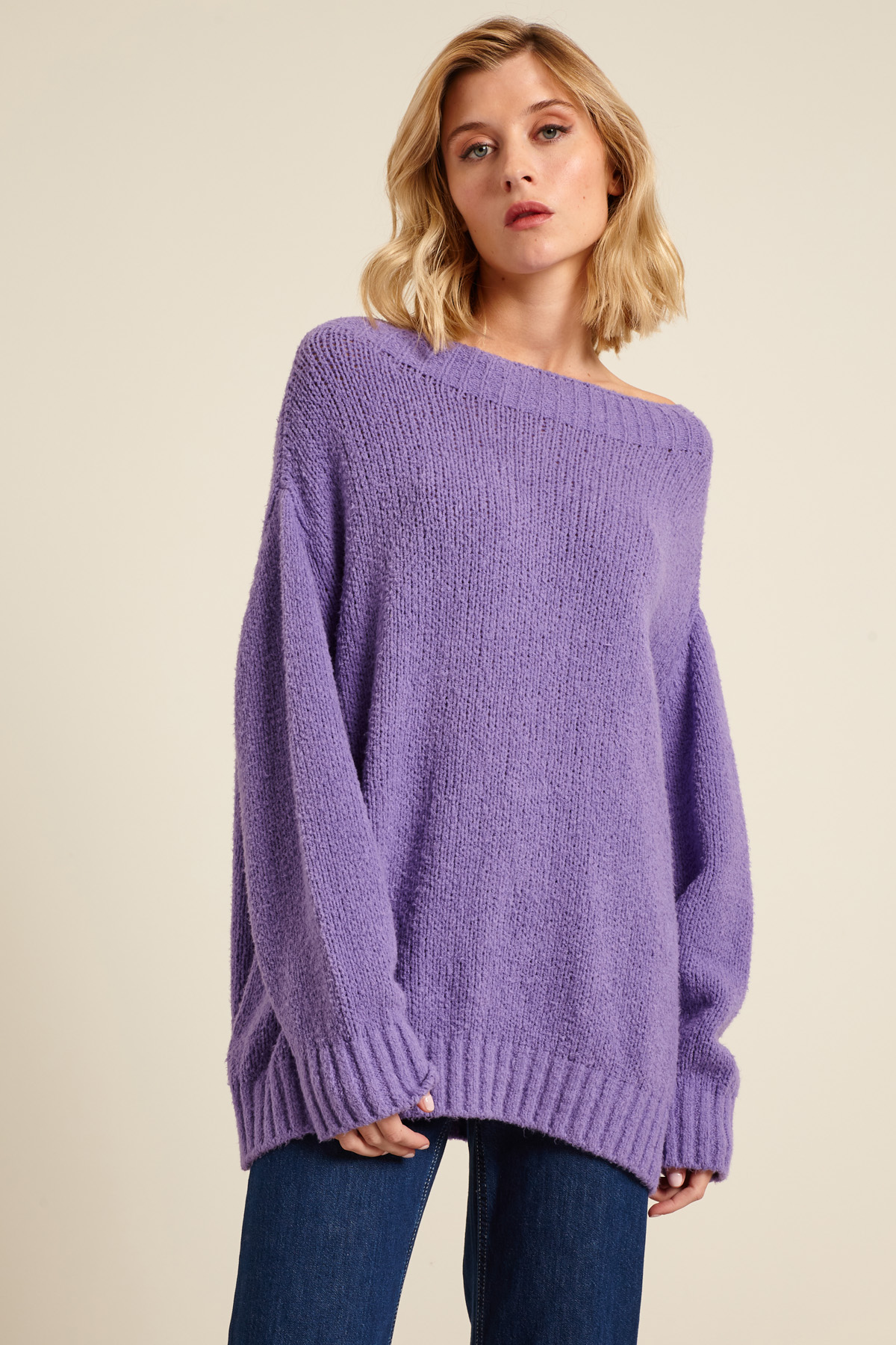 Maglia dalla linea over realizzata in filato di misto cotone con scollo a giro e maniche lunghe dal giro sceso.