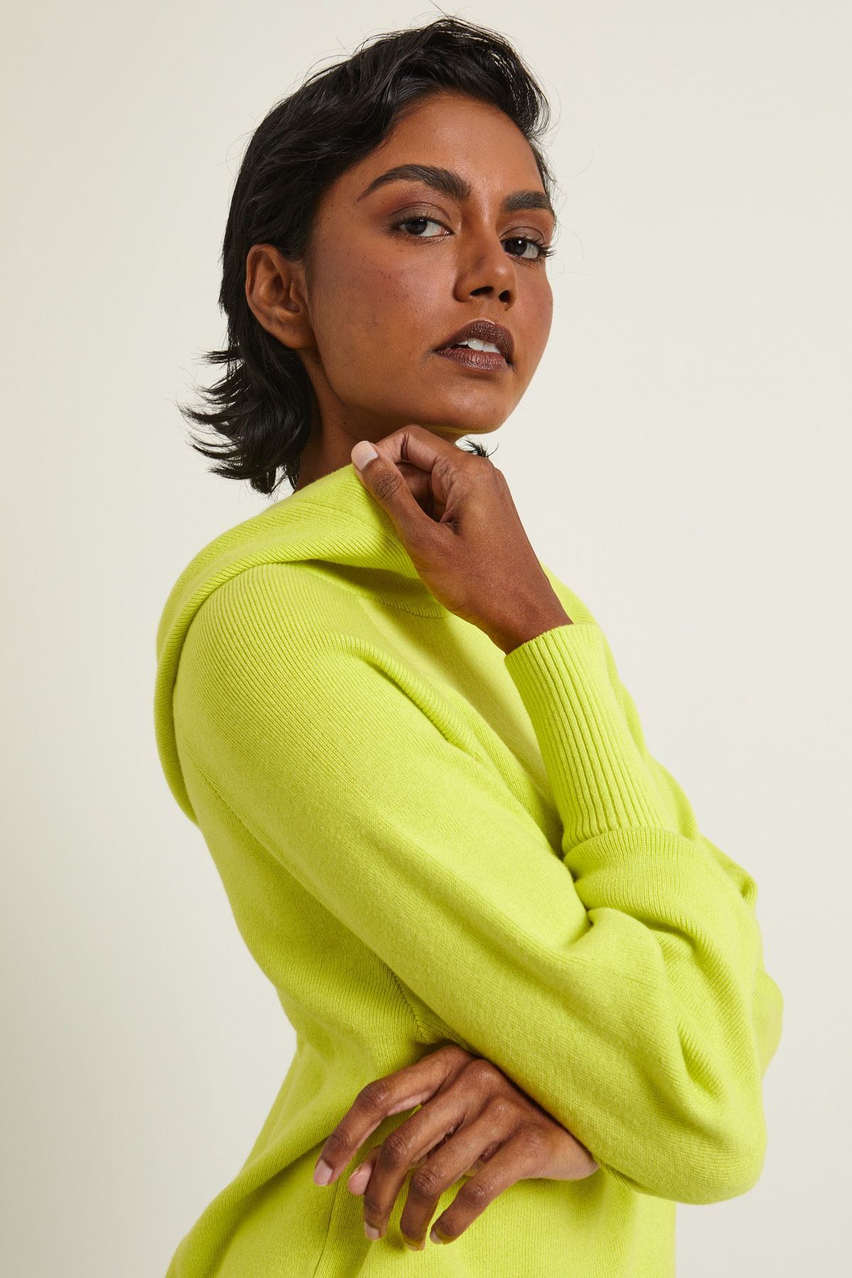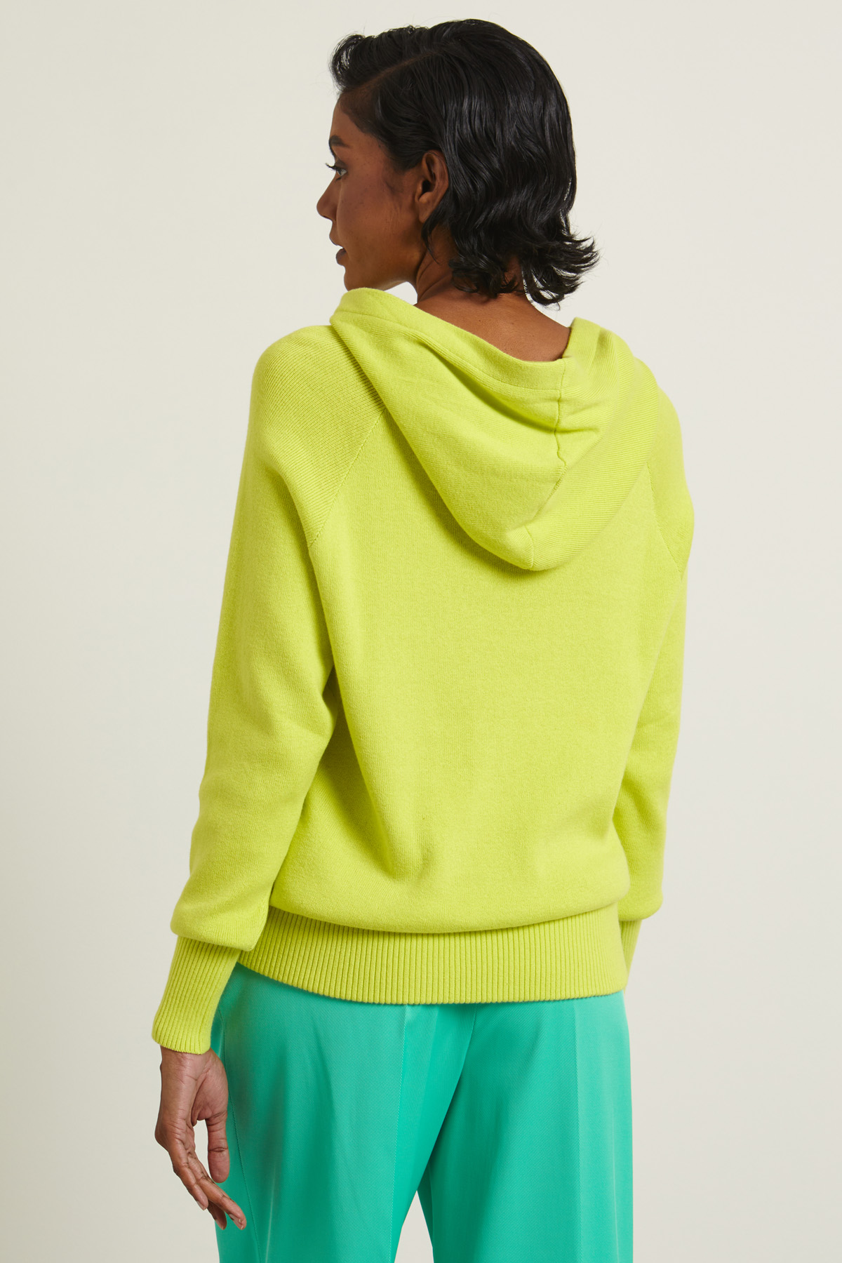 Maglia dalla linea morbida realizzata in filato di misto cotone e cashmere con cappuccio, maniche lunghe raglan e profili rifiniti a coste.