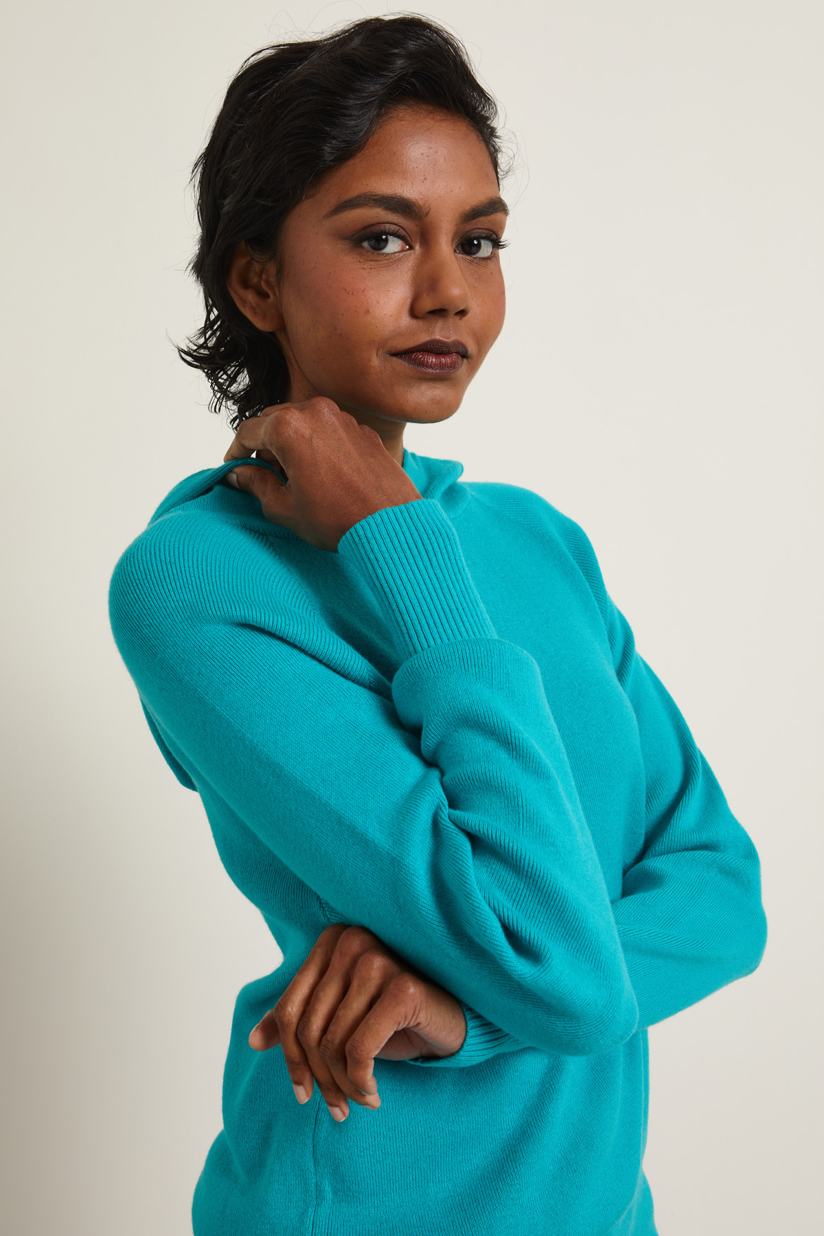 - Filato in maglia 90% cotone, 10% cashmere; bordi 77% cotone, 11% poliammide, 9% cashmere, 3% elastan.