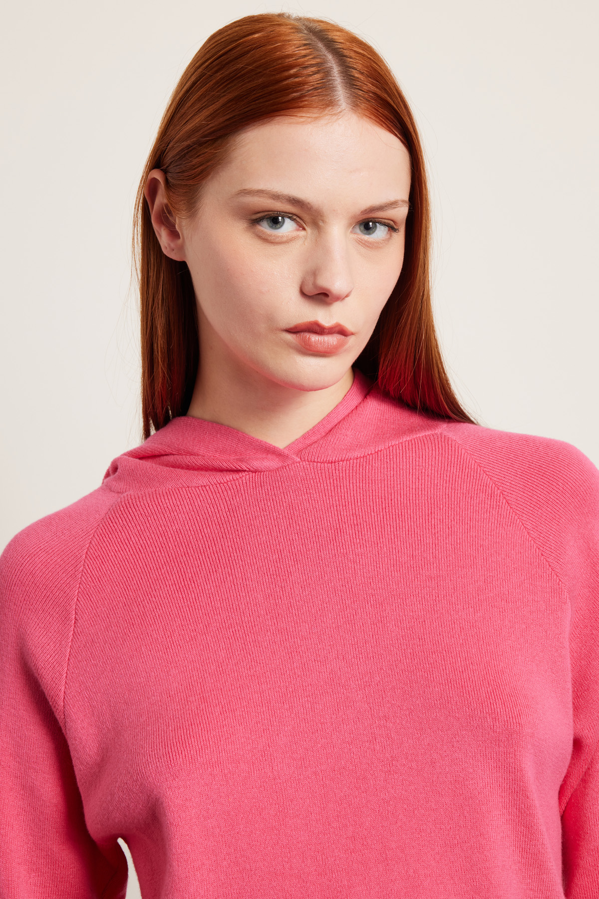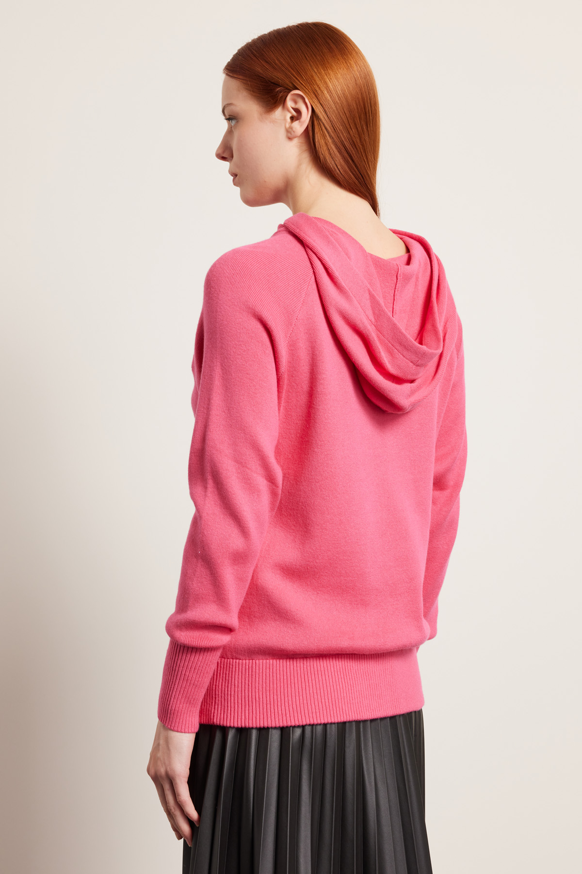 Maglia dalla linea morbida realizzata in filato di misto cotone e cashmere con cappuccio, maniche lunghe raglan e profili rifiniti a coste.