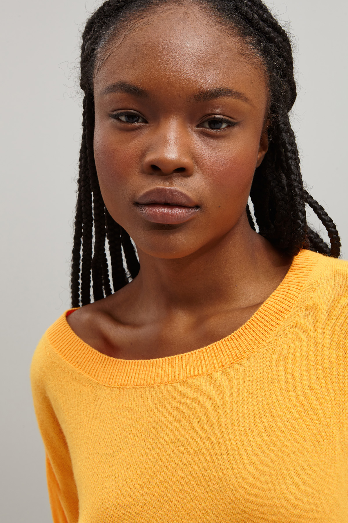 Maglia dalla linea dritta realizzata in filato di lana e cashmere, con scollo a barchetta, maniche lunghe dal giro sceso e spacchetti al fondo.