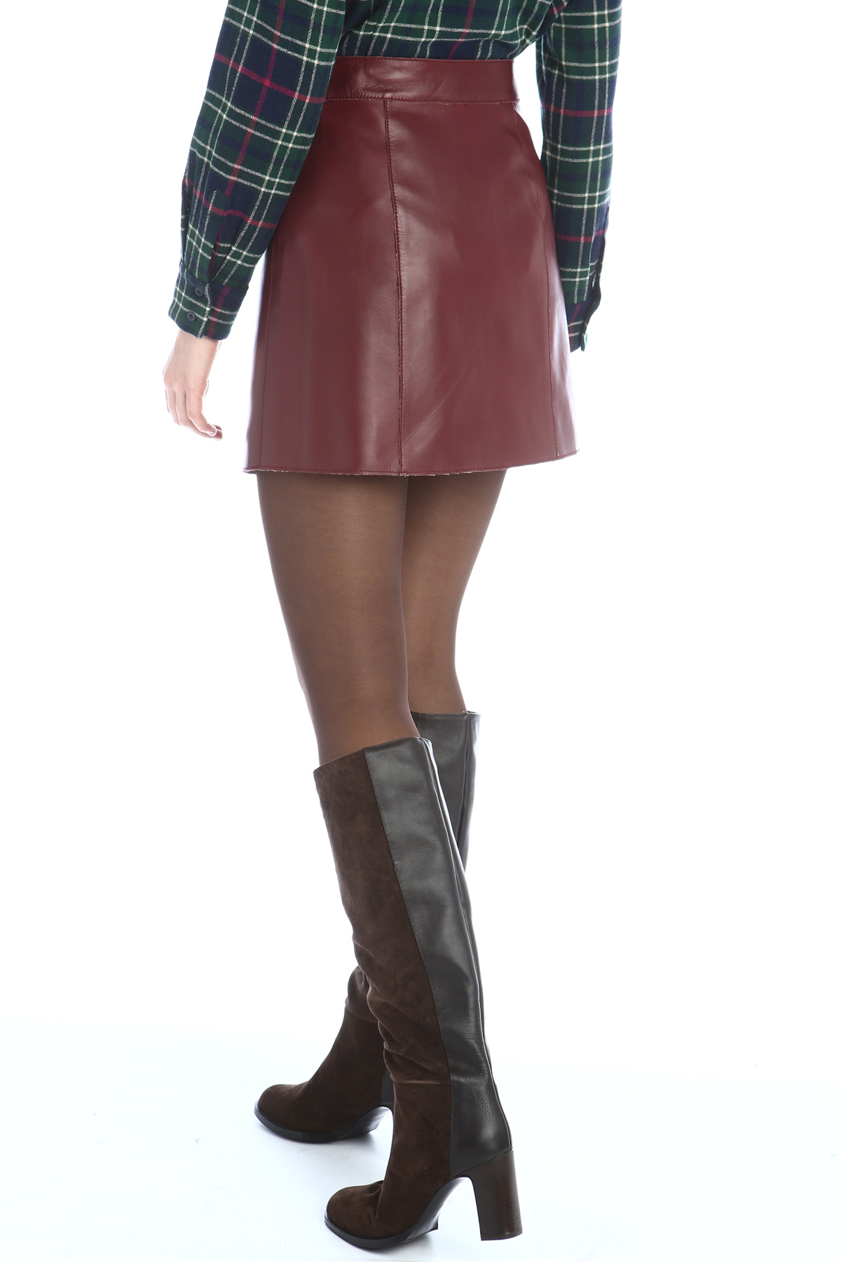 Minigonna dalla linea ad A realizzata in vera pelle, interno in lana e allacciatura tramite zi a doppio cursore a tutta lunghezza.