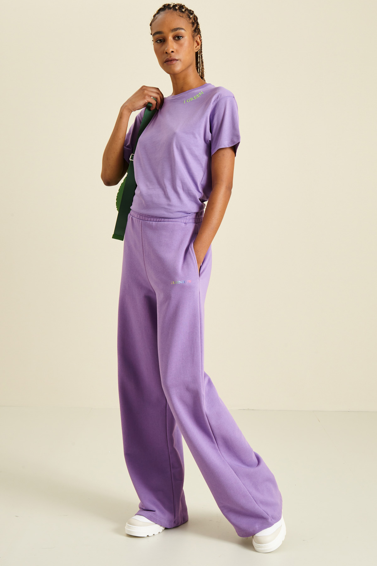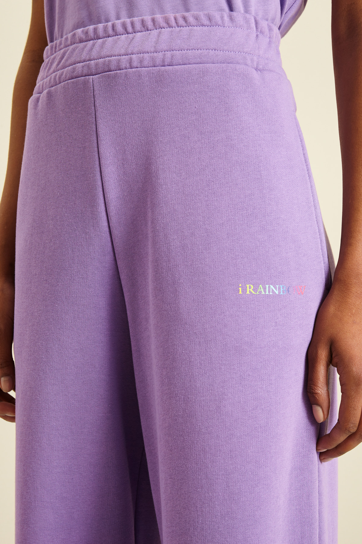 Jogger dalla linea morbida realizzati in jersey pesante di puro cotone, con dettaglio stampato, inserto elastico in vita e tasche laterali inserite in cucitura.